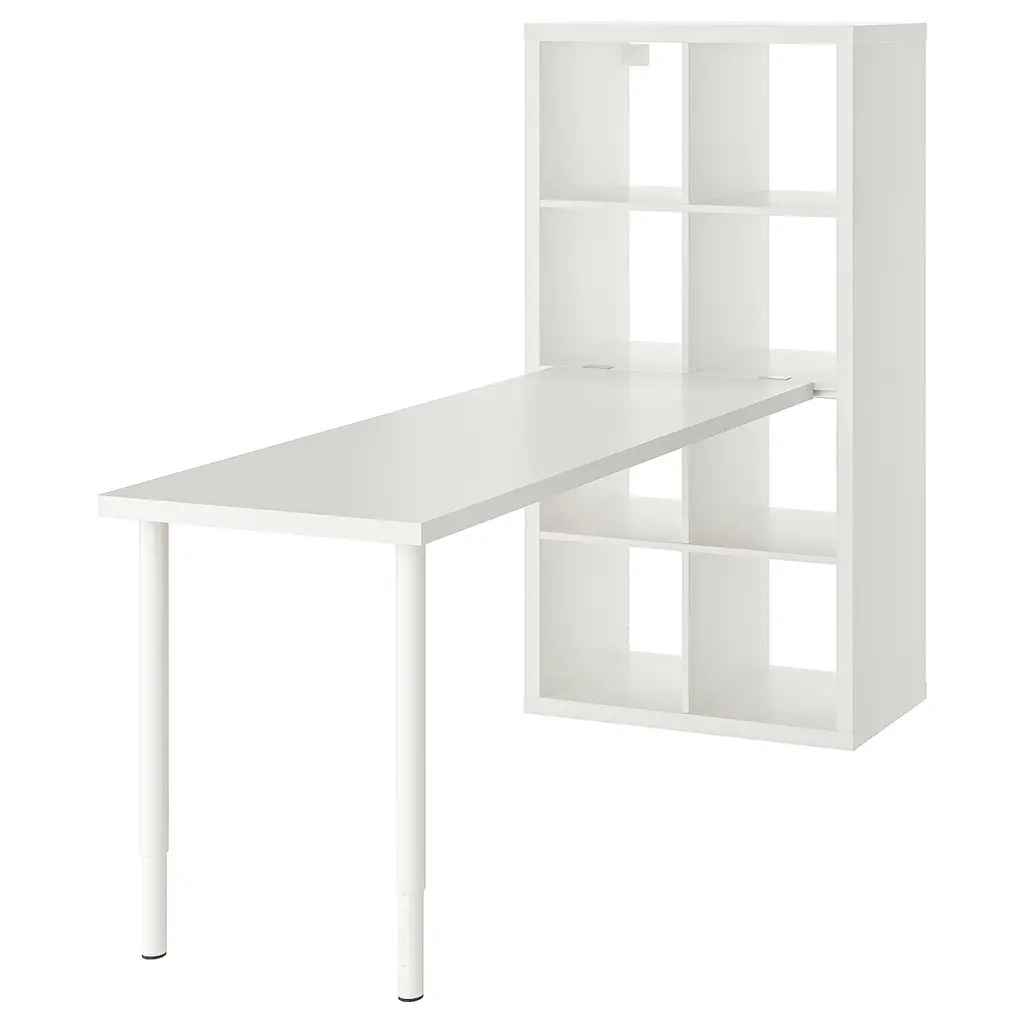KALLAX / LAGKAPTEN Workstation - white 30 1/8x70 1/2x57 5/8 ". You can use these fittings to connect LAGKAPTEN or LINMON table top to a KALLAX shelf unit of your choice. Choose whether you want to place it vertically or horizontally to use it as a shelf or sideboard.