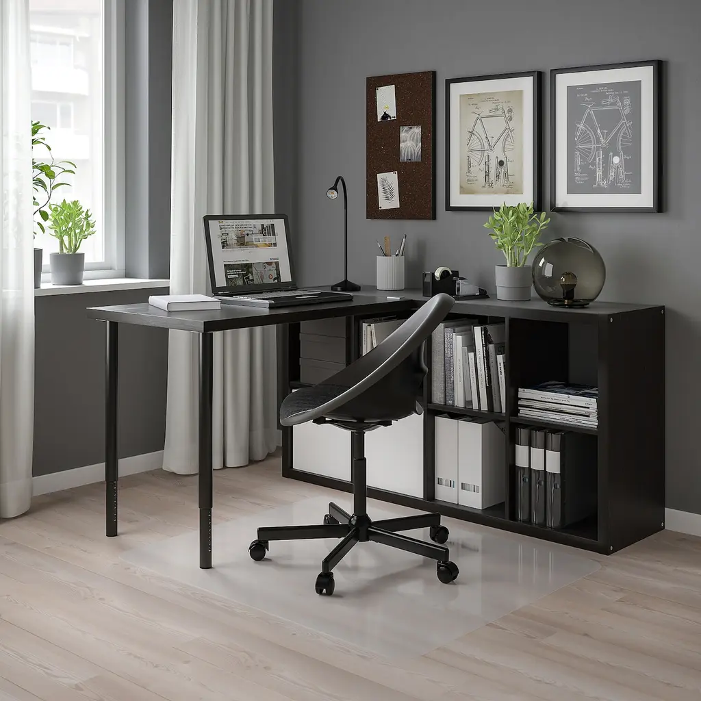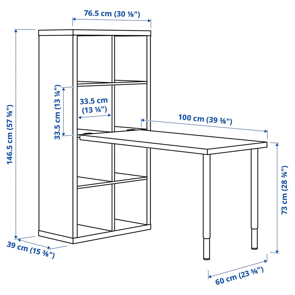 KALLAX / LINNMON Workstation - black/black-brown 30 1/8x54 3/4x57 5/8 ". You can use these fittings to connect LAGKAPTEN or LINMON table top to a KALLAX shelf unit of your choice. Choose whether you want to place it vertically or horizontally to use it as a shelf or sideboard.