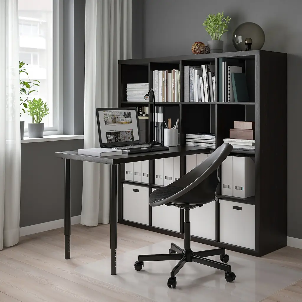 KALLAX / LINNMON Workstation - black/black-brown 57 7/8x54 3/4x57 5/8 ". You can use these fittings to connect LAGKAPTEN or LINMON table top to a KALLAX shelf unit of your choice. Choose whether you want to place it vertically or horizontally to use it as a shelf or sideboard.