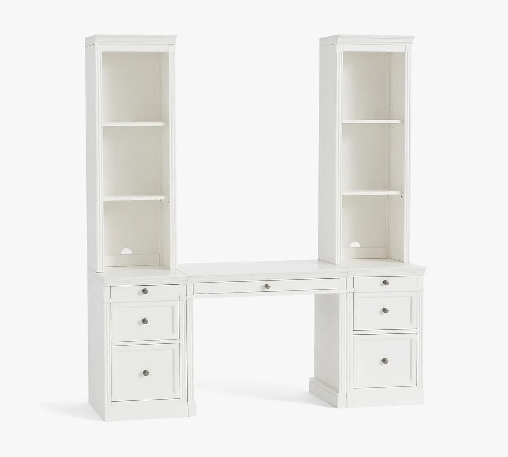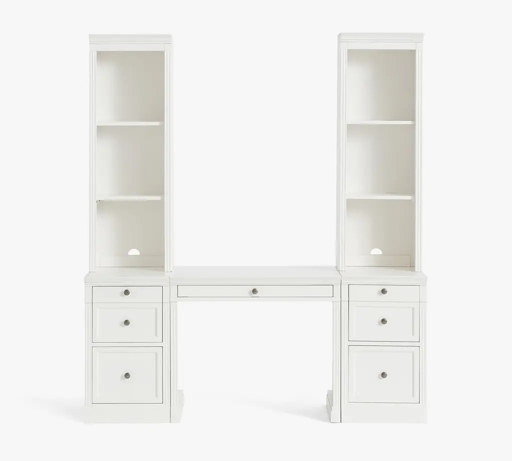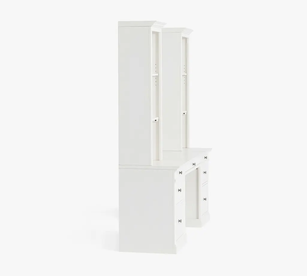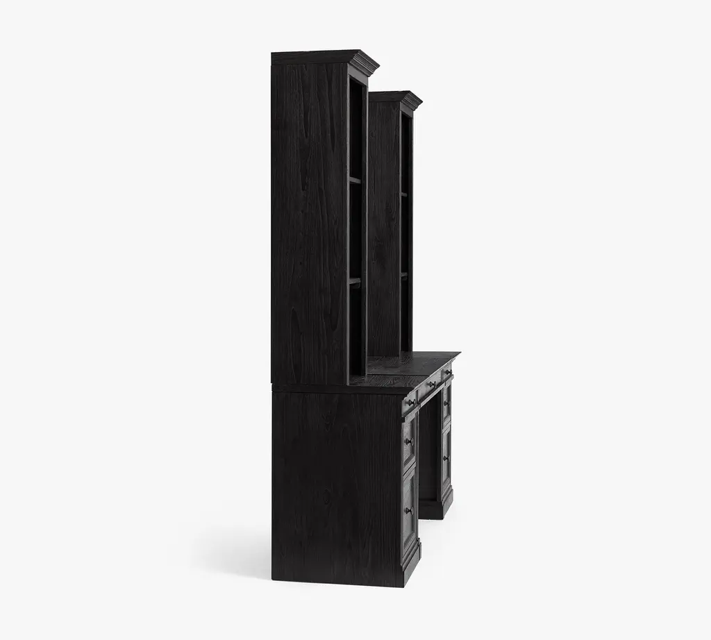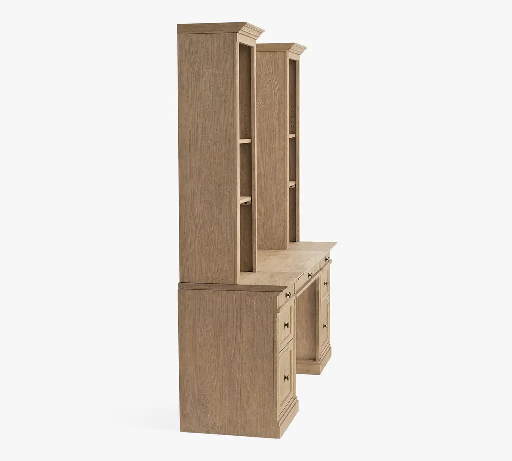 Classic details like crown molding, fluted trim, and hand-applied finishes give this customizable collection timeless appeal. Setting a desk between two bookcase towers and file cabinets, this suite brings order to the tasks at hand. Designed to work seamlessly with the collection’s other modular components, it creates a functional and sophisticated workspace.