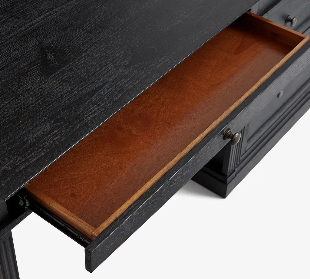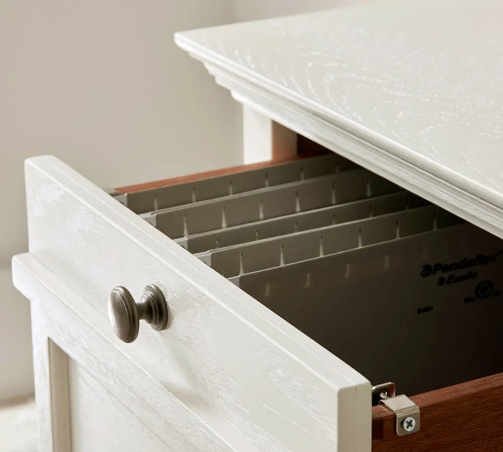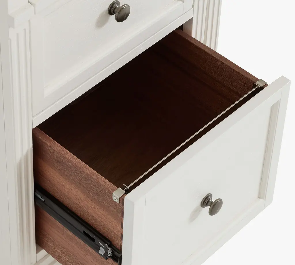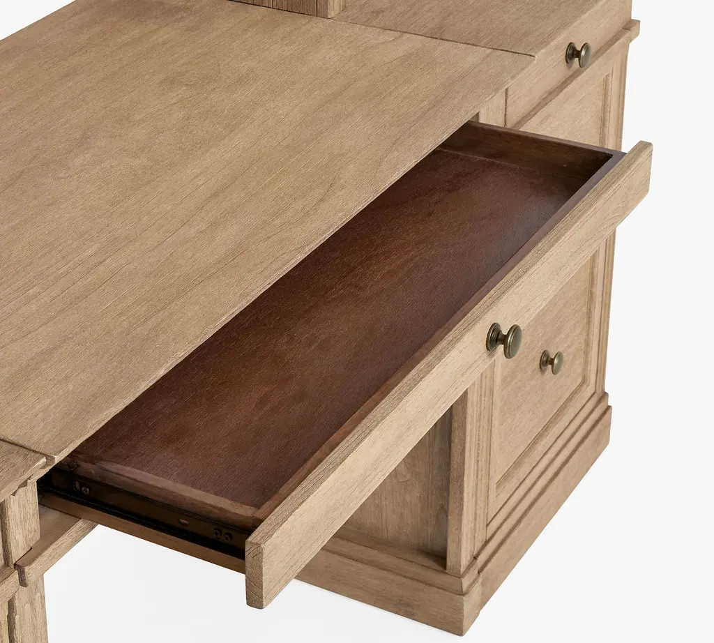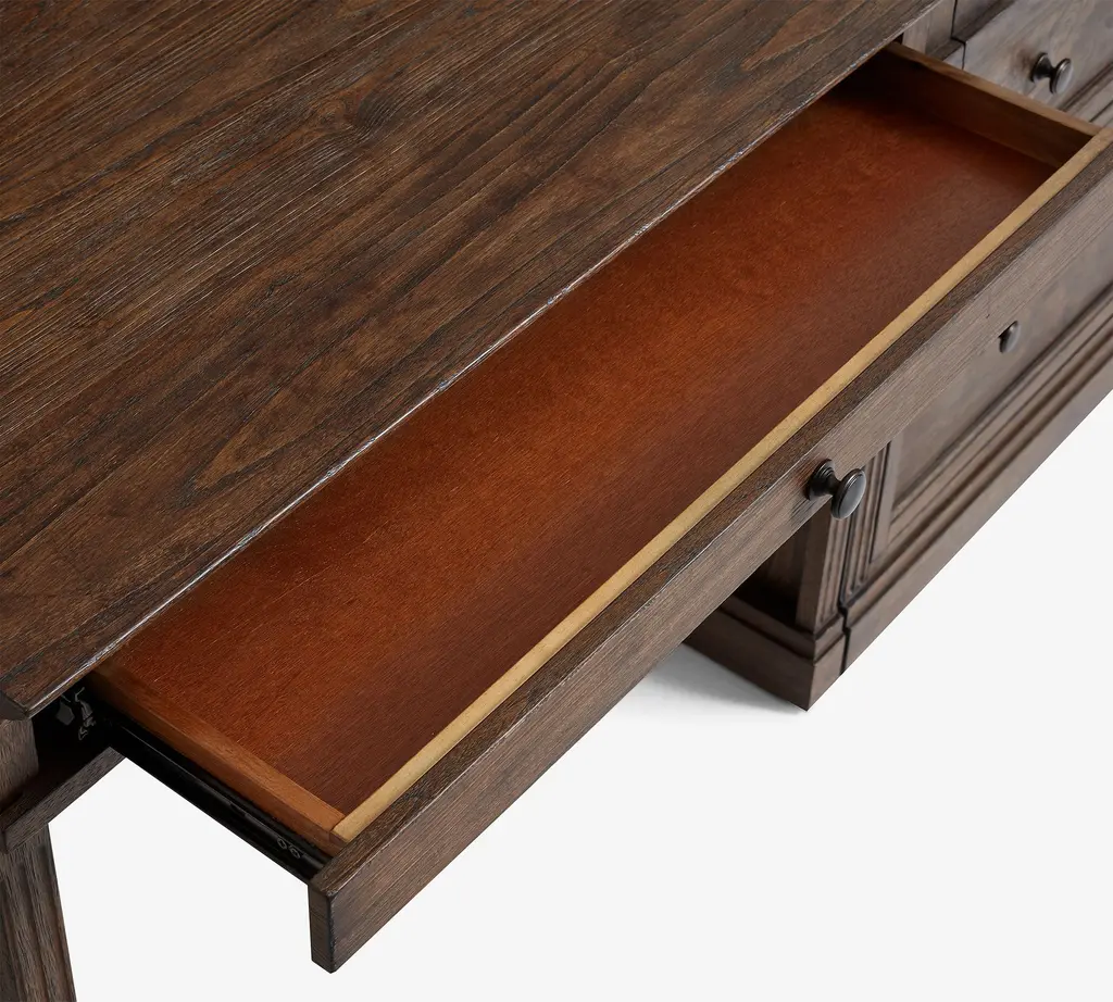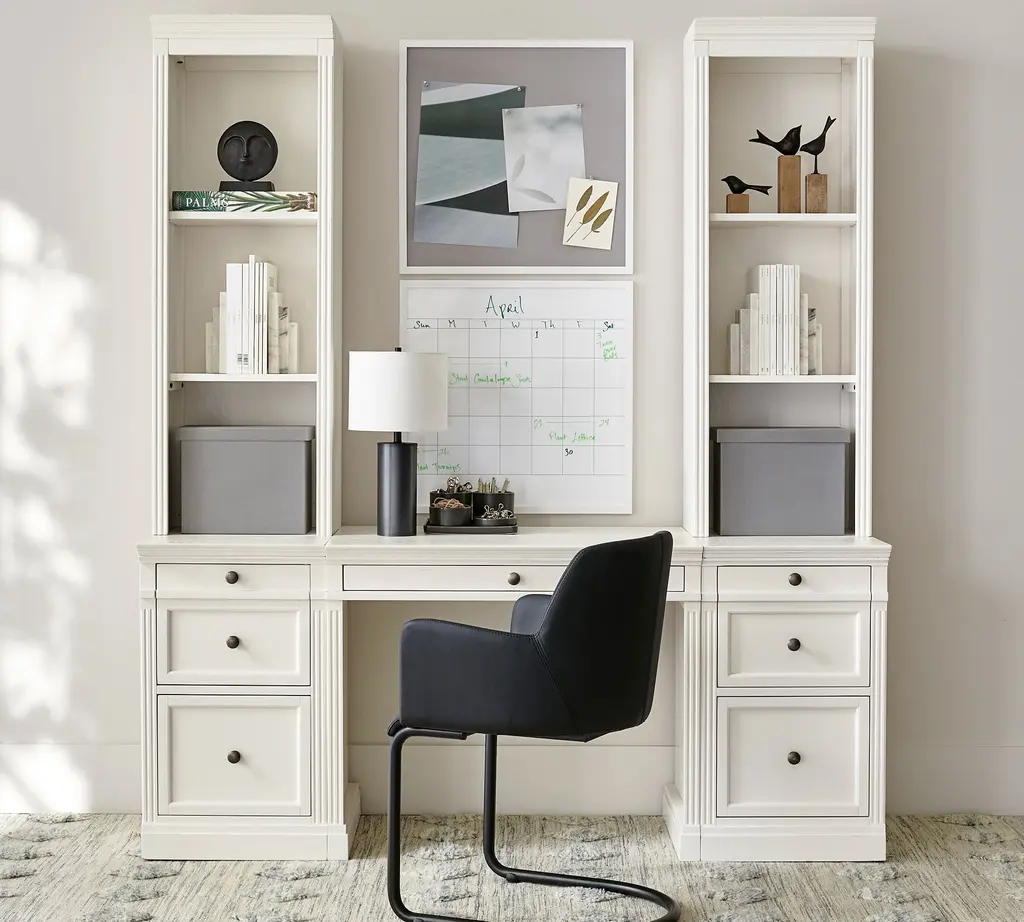 Classic details like crown molding, fluted trim, and hand-applied finishes give this customizable collection timeless appeal. Setting a desk between two bookcase towers and file cabinets, this suite brings order to the tasks at hand. Designed to work seamlessly with the collection’s other modular components, it creates a functional and sophisticated workspace.