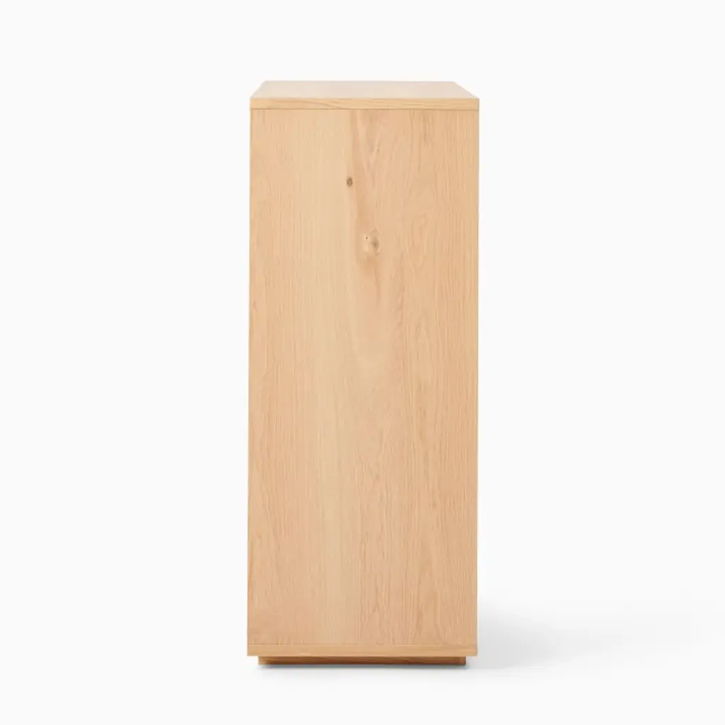 European oak veneer over engineered wood. Covered in a water-based Blonde finish. All wood is kiln-dried for added durability. Made with FSC®-certified wood from responsibly managed forests. Flip down door. 2 doors open to 1 adjustable shelf. Made in Romania.