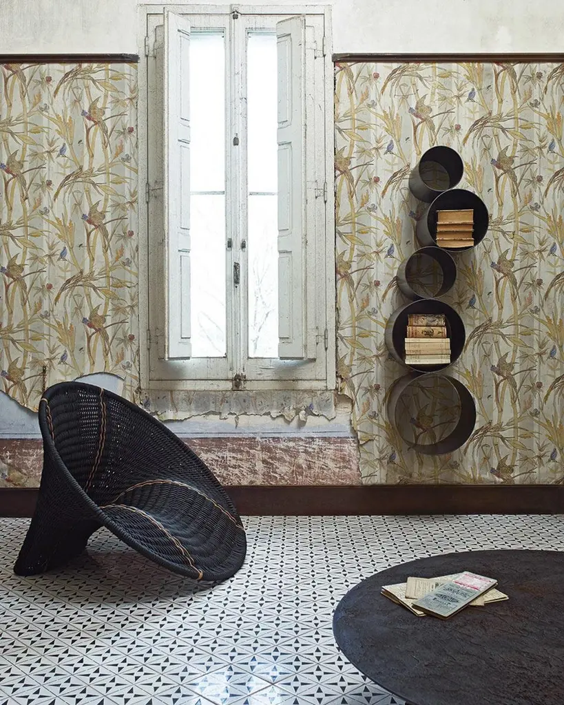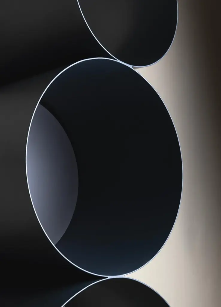 Wall bookcase - Rings of different diameters obtained from calendered steel sheet and welded among themselves. Wall-fixing with dowels, hidden from sight by two steel discs fixed by magnets.