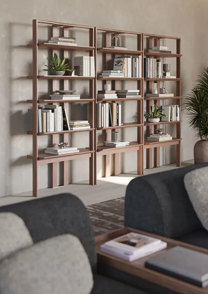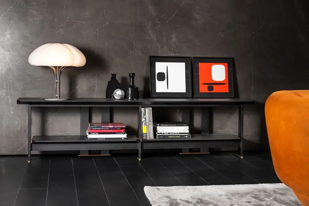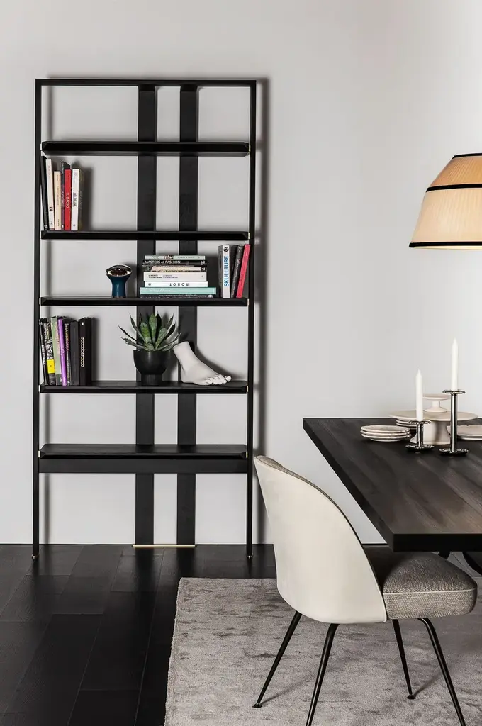 The space around us is full of objects to be put away: Next has clear surfaces and lines, it’s elegant and functional without exceeding in decoration. Technical featuresStructure: moka dyed oak or Canaletto walnut, galvanized metal joints in gold colourShelves: moka dyed oak or Canaletto walnut