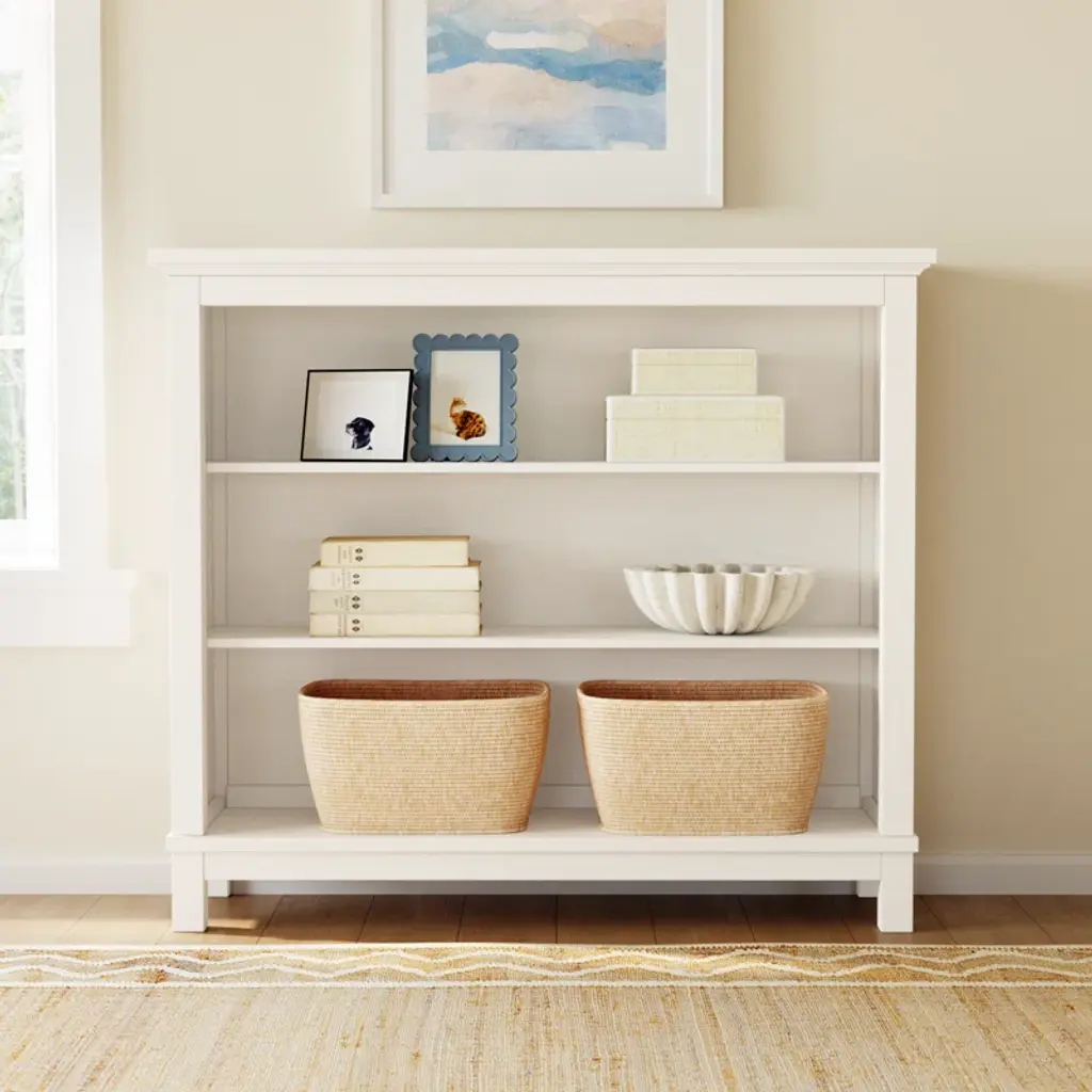 Enhance your child's bedroom with the Bartelso Traditional Hutch/Bookcase in a beautiful Brushed White Finish. This beautifully crafted piece by Harper Orchard maximizes space and offers ample storage for all your little one's books. With overall dimensions, it can stand alone or be placed on top of the Bartelso 6 Drawer Dresser. Constructed from solid wood and pine veneers, this hutch/bookcase ensures durability and longevity. The anti-tip kit included, securing the item to a wall for added safety. It features three shelves for convenient storage and a removable base, allowing it to also be used as a freestanding bookcase.