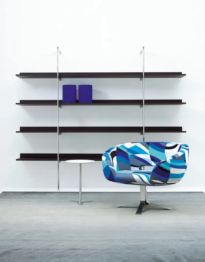 The Aliante bookshelf by Giulio Cappellini and Rodolfo Dordoni comes in an array of wall-hanging configurations and consists of a metal structure paired with wooden shelves.The support structure is composed of two polished metal combs; the shelves come with a polished chrome matte varnished finish, in white, anthracite and mud; the shelves are available with a matte or glossy finish, in the colours of the collection, or in natural or wengé-stained oak. The visual impact can also be personalised: in fact, the shelves of the Aliante bookshelves can come in multiple colours.The shelves are attached to the structure with socket-head screws, whereas the bookshelf attaches to the wall with an expansion hook. Structure: metal tube with rectangular sectionStructure finish:- 407 polish chrome- matt varnished: 01 white, 04 black, 71 mudShelves: chipboard panels melamin platedShelves finish: matt lacquer, matt lacquer extra, polish lacquer, polish lacquer extra, 133 natural oak, 150 wengé-stained oak, 158 black-stained oak - fixed to the structure through socket - head screws