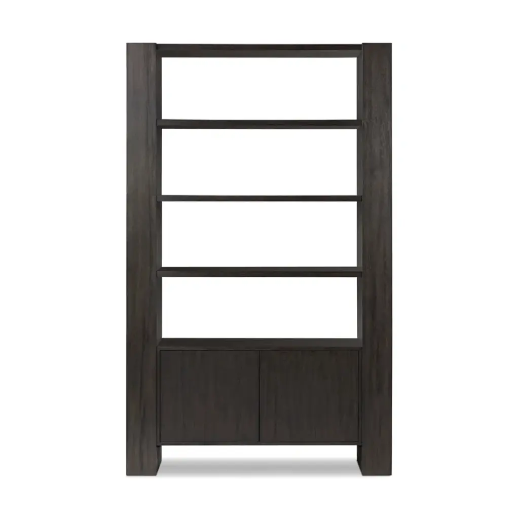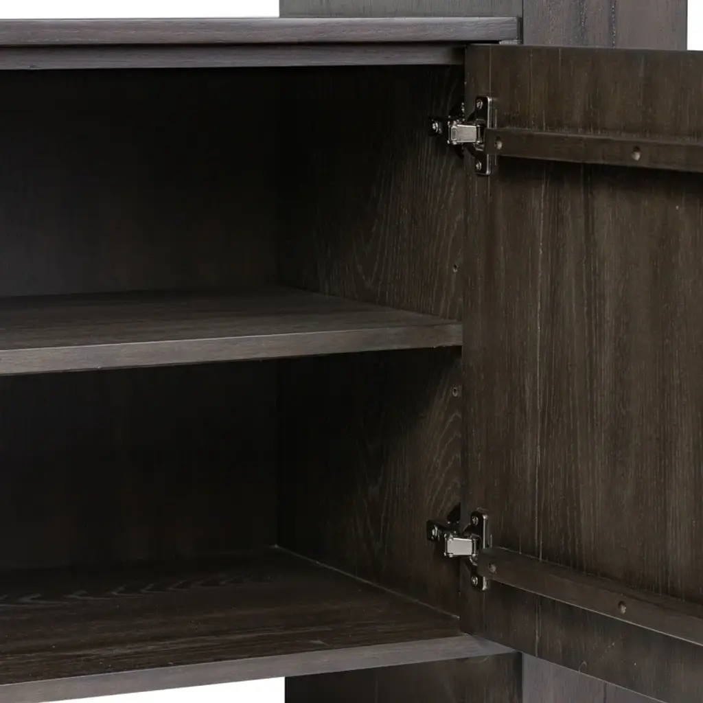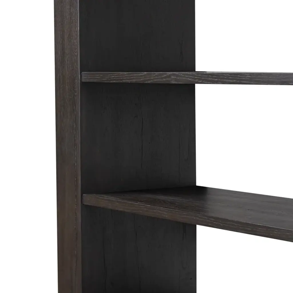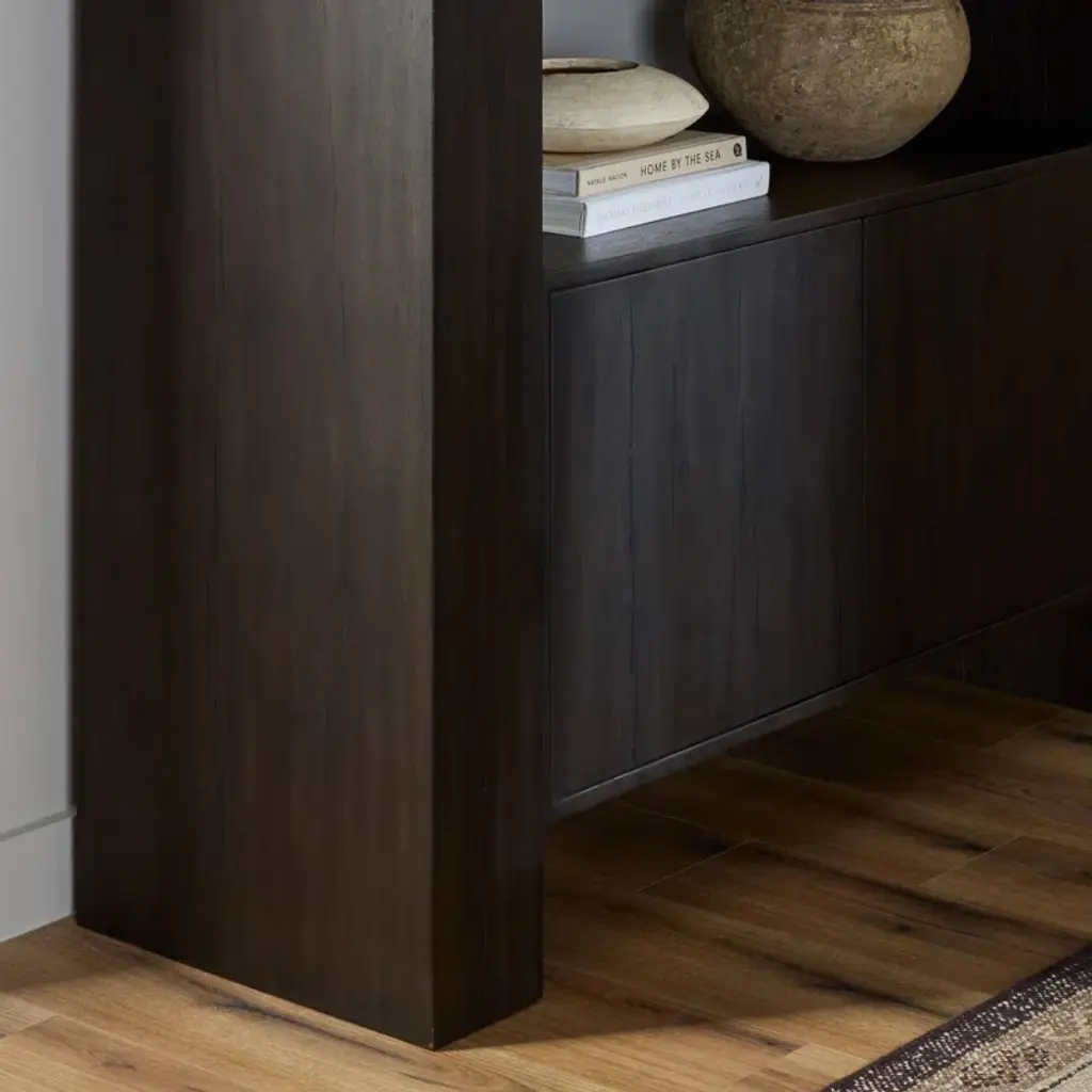 With half-cylinder sides inspired by the Eighties design, almond-finished oak works warmly in any room in your home. Spacious shelves create endless storage and display options for favorite books and keepsakes.