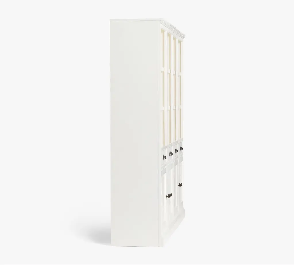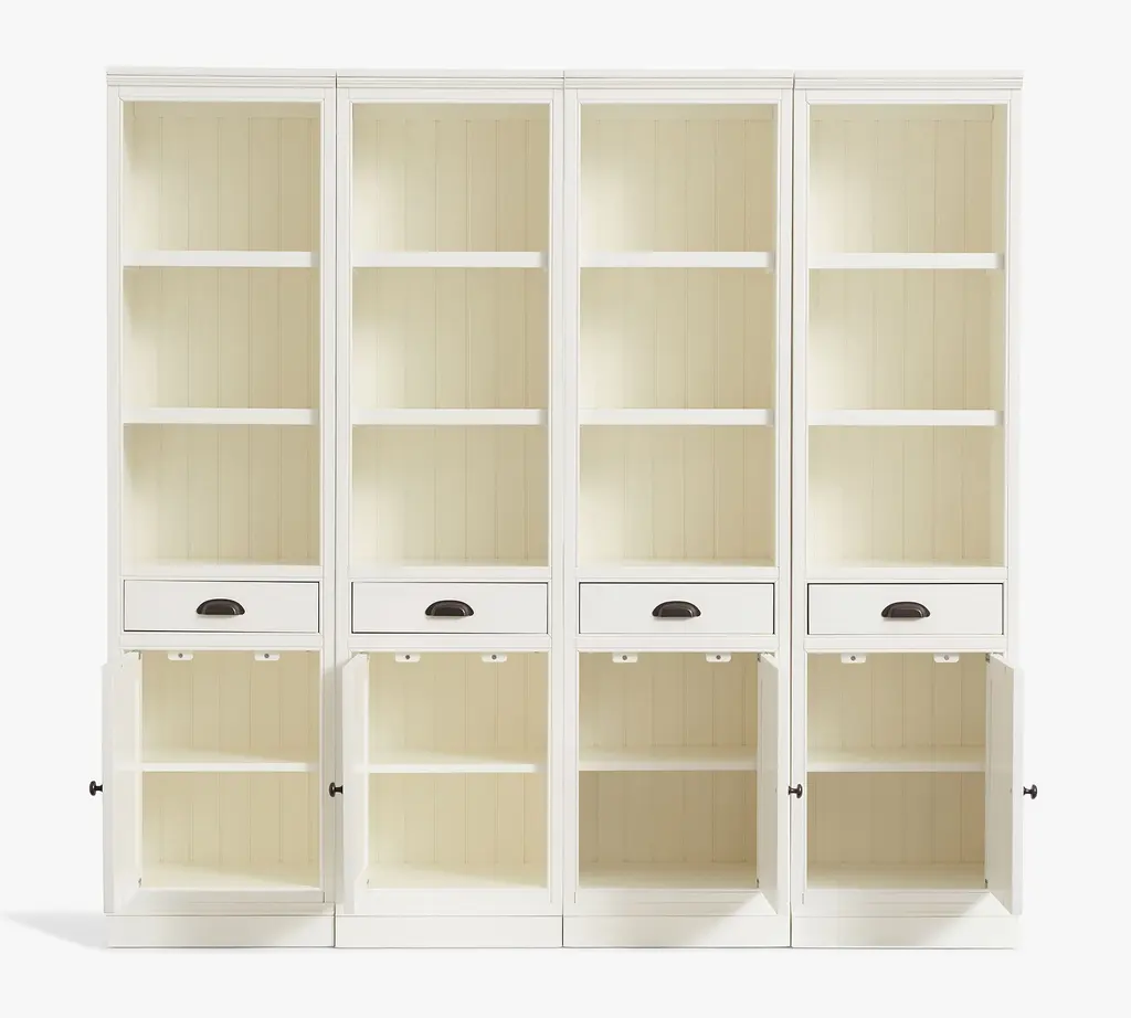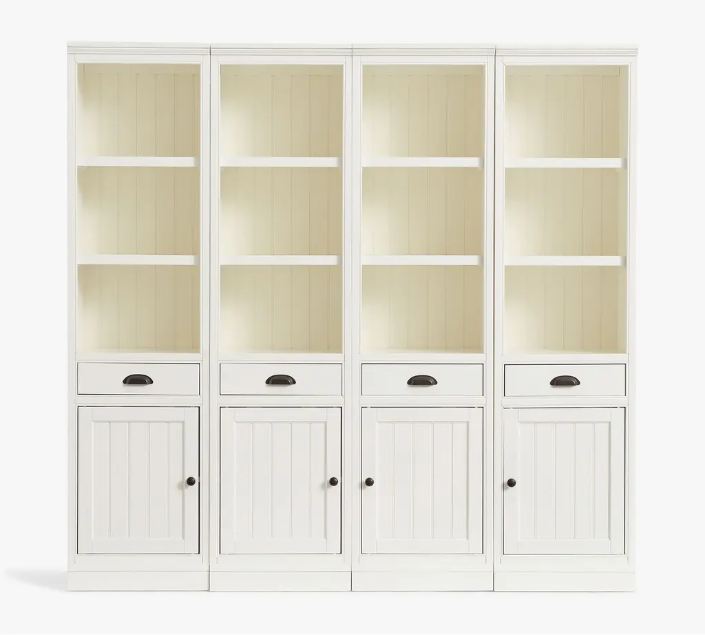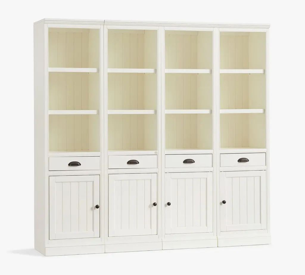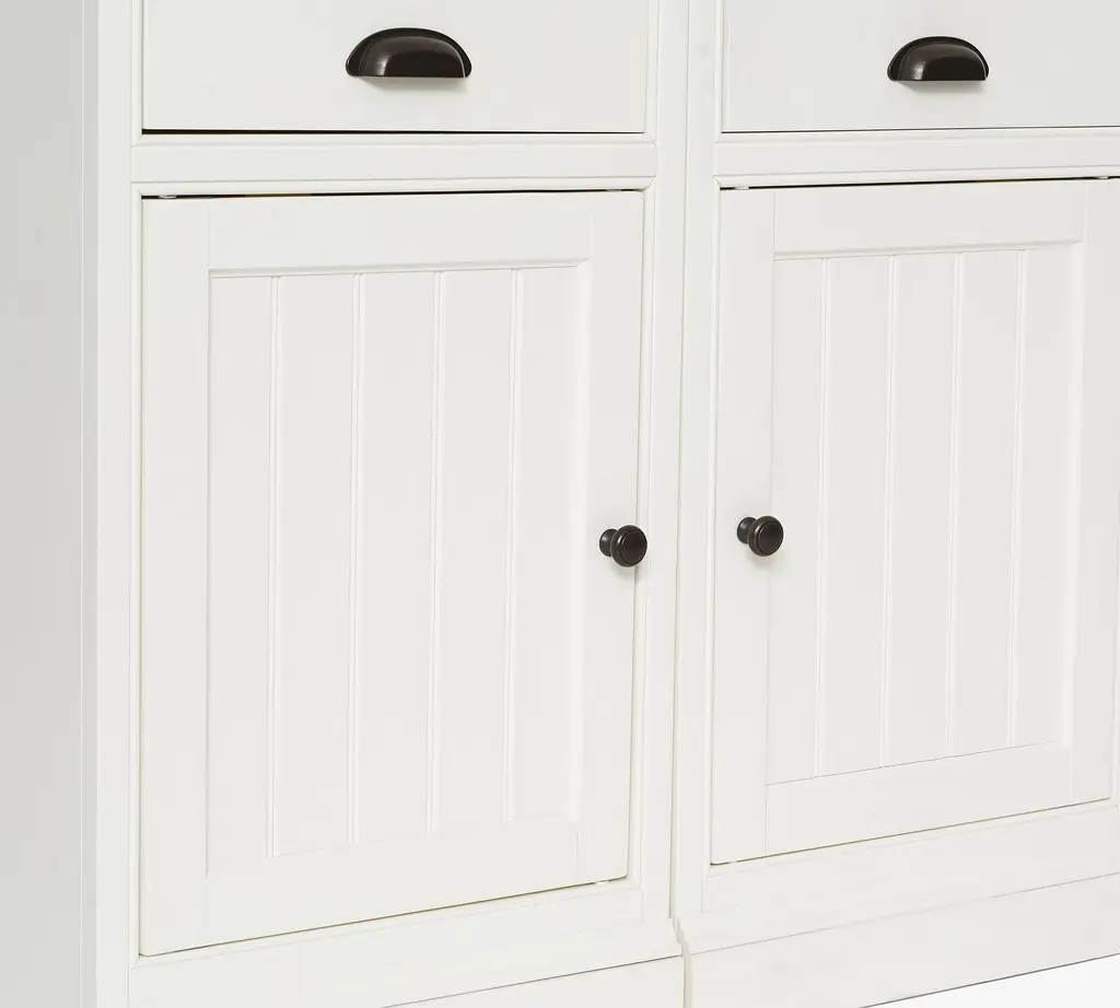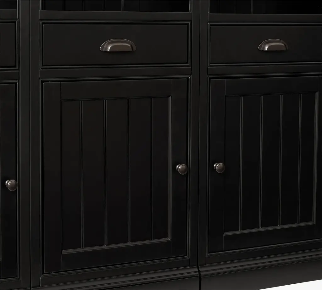 Designed like built-in cabinetry, our Aubrey Collection boasts handsome details like molding, plinth bases, and frame-and-panel fronts on doors and drawers. Beadboard paneling and a hand-applied water-based finish attest to its traditional American style. It’s accented with hardware in an antique-bronze finish. This substantial modular collection is crafted with no return molding so that the components can fit flush next to each other.