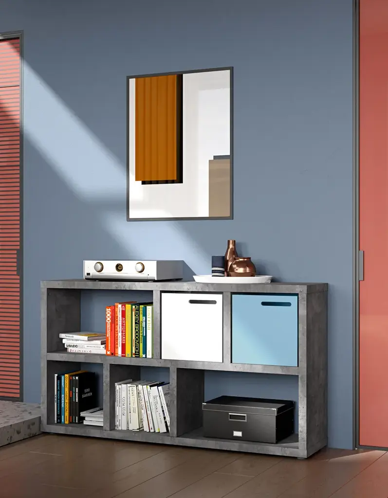 The Berlin console is inspired in the geometric design of the Berlin bookcase, created to blend any living area. Simple and practical is available in 5 finishes: oak and walnut veneer, white lacquered and white lacquered with a trendy plywood edge, and finally in concrete look. When combined with the optional Berlin box, can bring a splash of colour to any room.Finish: matt white white matte and plywood edges oak veneer walnut veneer concrete look melamine