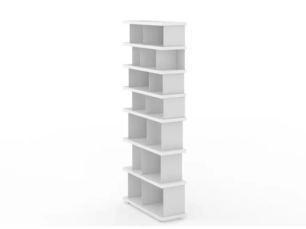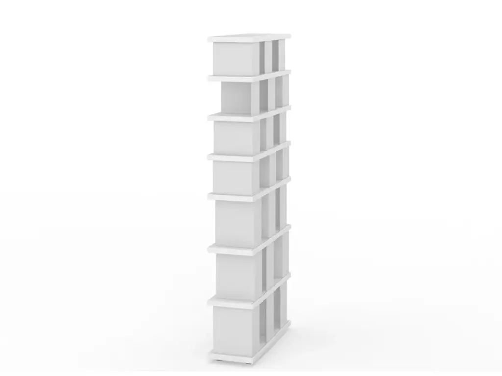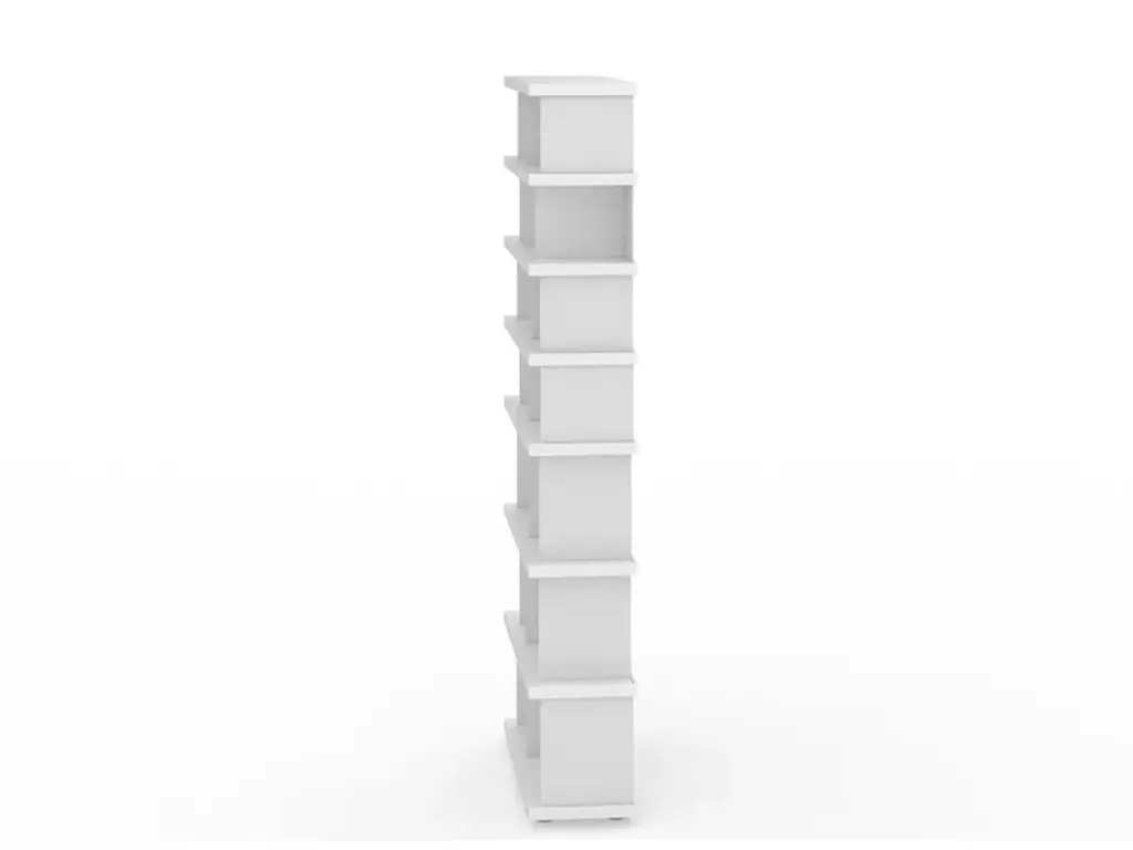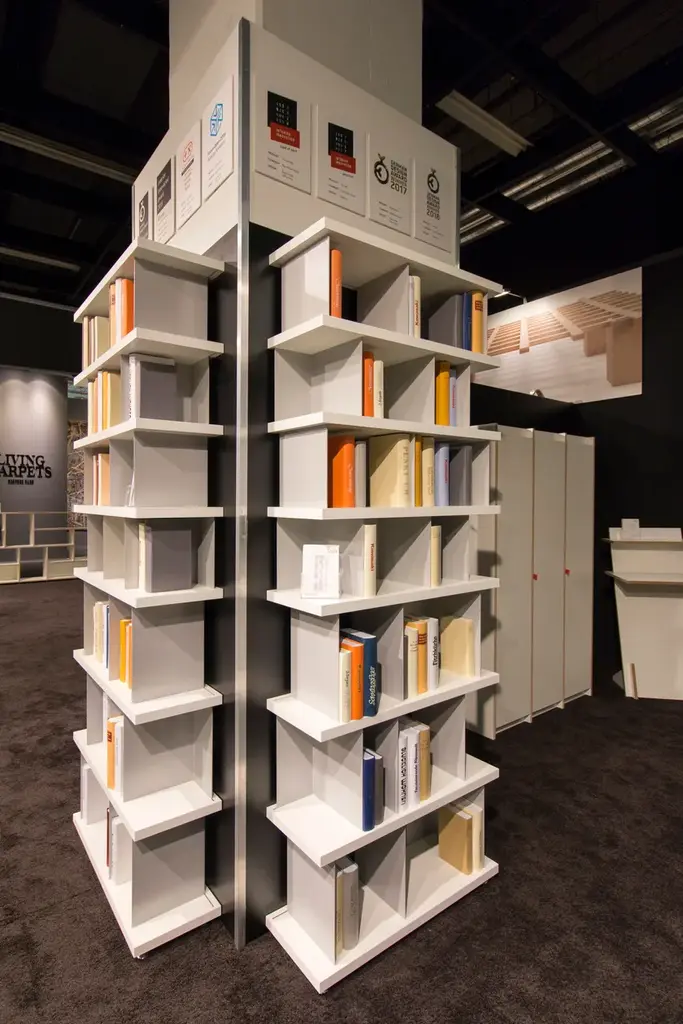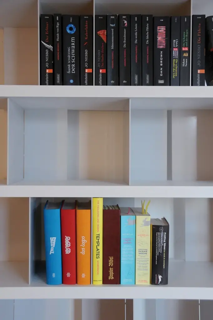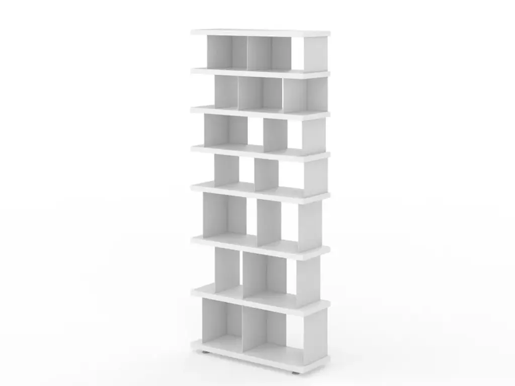 Bieg... the freestanding bookcase is the little brother of the shelf system Tojo-stell.The look has been refined and the dimension adapted at the common book formats. This makes it possible to build a flexible bookshelf, get both in the pocket books, as well as larger books with hard cover their own levels.Tojo-bieg is available in base and extension modules. The angle brackets are pre-bent and must only be used accordingly.MaterialShelves MDF, white painted mattAngle brackets aluminium, light gray powder coated.DimensionsShelves: 80 x 28 cmAngle bracket: 31 cm or 23 cm highThe shelf pictured consists of the following modules:1 x base-module large, 2 x extension-module large, 4 x extension-module small Award2010 Contribution of the Kanton Bern for design and creation