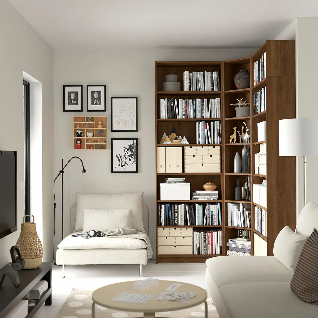Billy Bookcase Corner Comb W Ext Units - Brown Walnut Effect 53 1/2/53 1/2x11x93 1/4 "