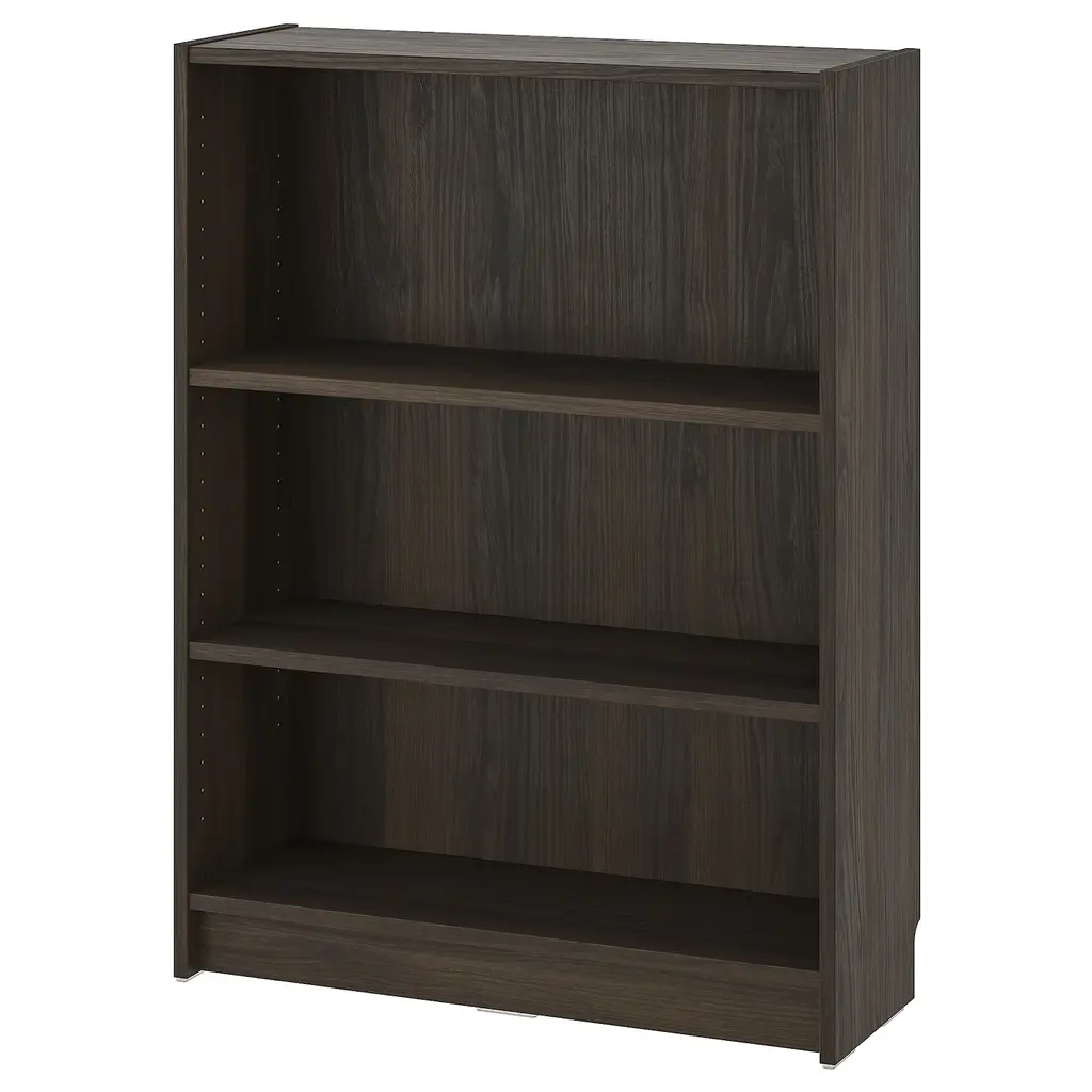 BILLY Bookcase - dark brown oak effect 15 3/4x11x41 3/4 ". BILLY is a versatile bookcase that works just as good as a storage unit and is suitable to use in many different ways at home. 2 adjustable shelves included. May be used with doors; available in different colors and designs.