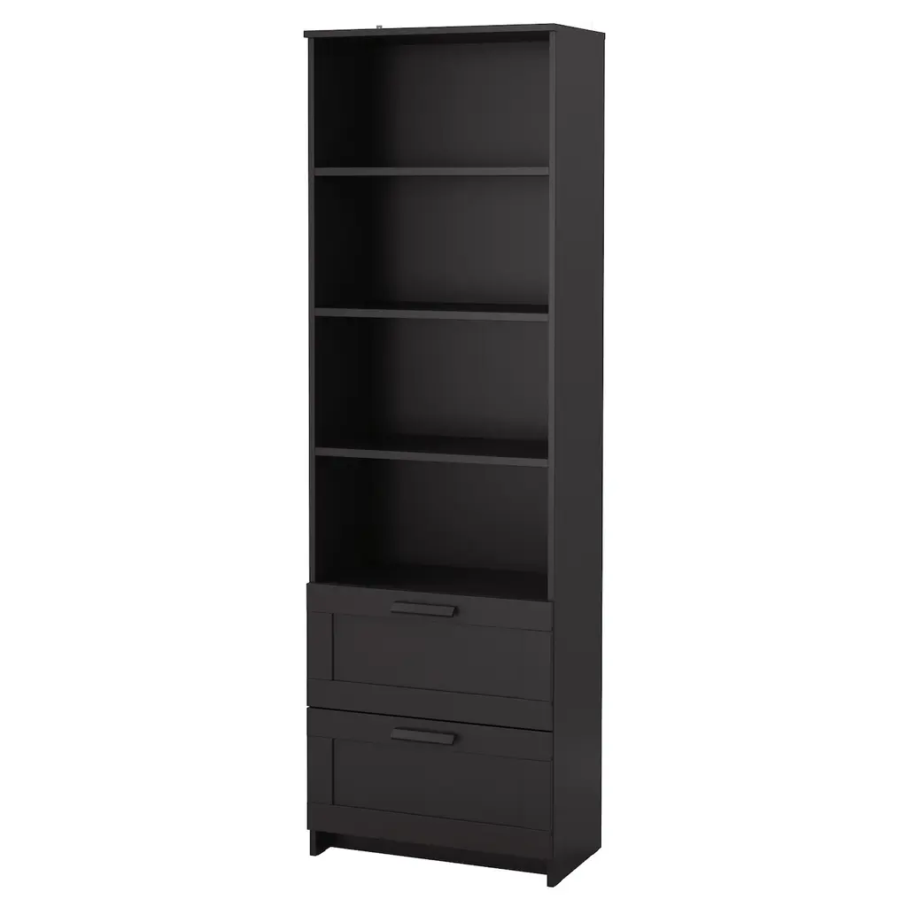 BILLY / HÖGBO Bookcase w glass doors - black oak effect 31 1/2x11 3/4x79 1/2 ". BILLY is a versatile bookcase that works just as good as a storage unit and is suitable to use in many different ways at home. Adjustable hinges allow you to adjust the door horizontally and vertically.
