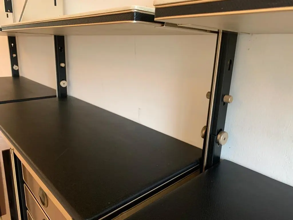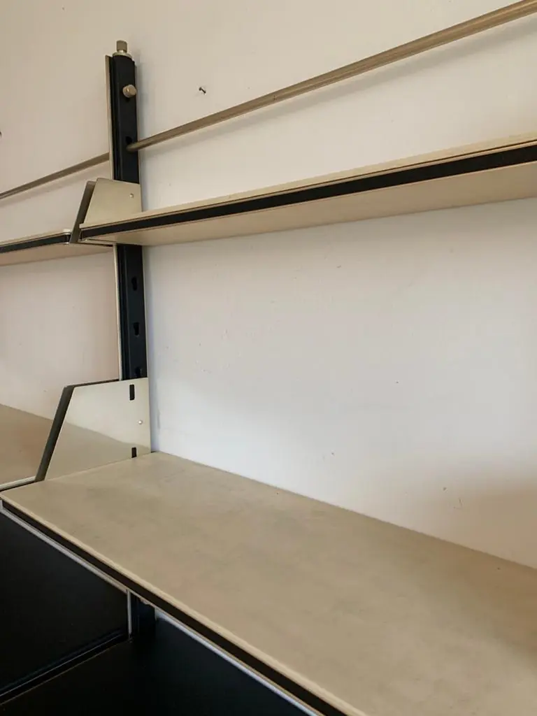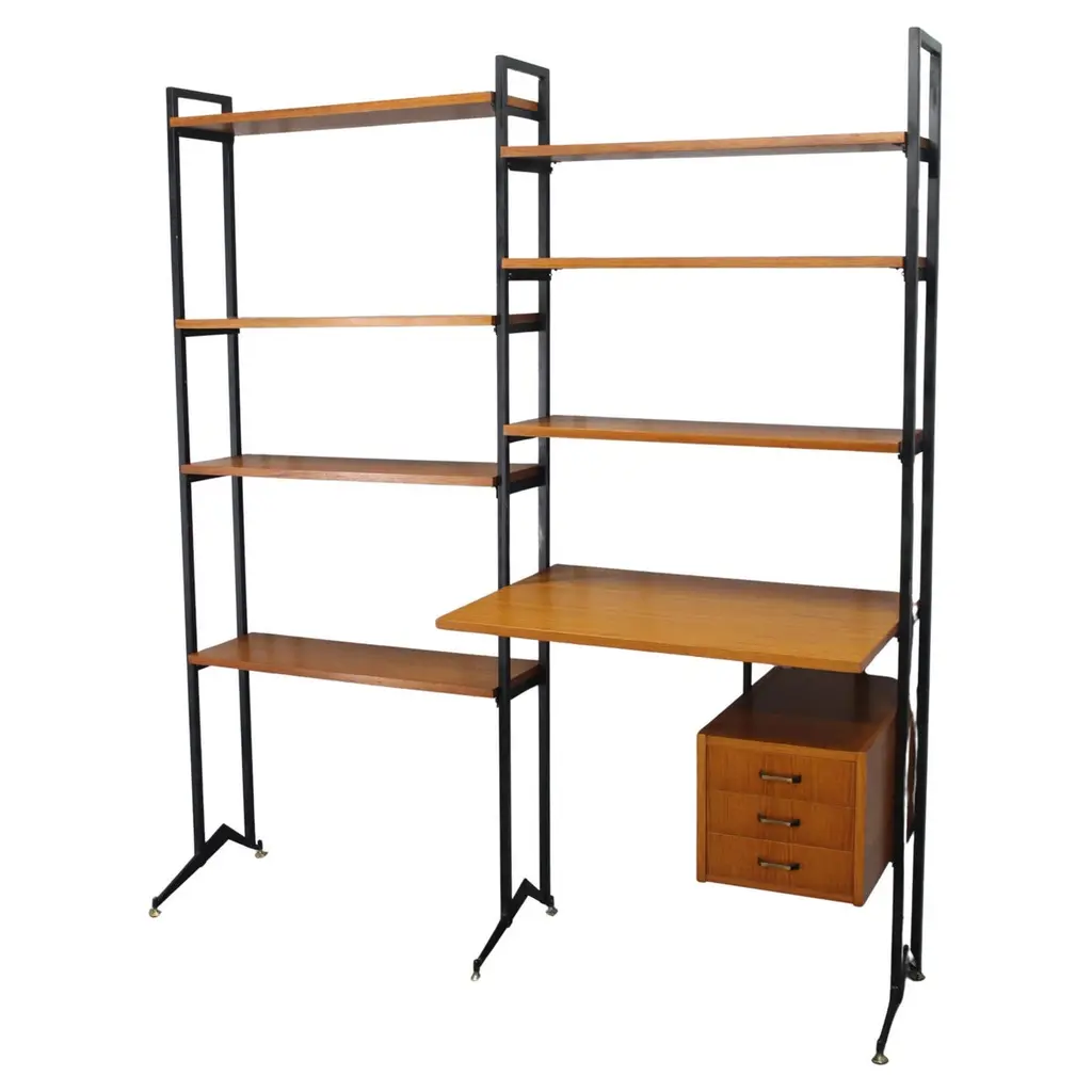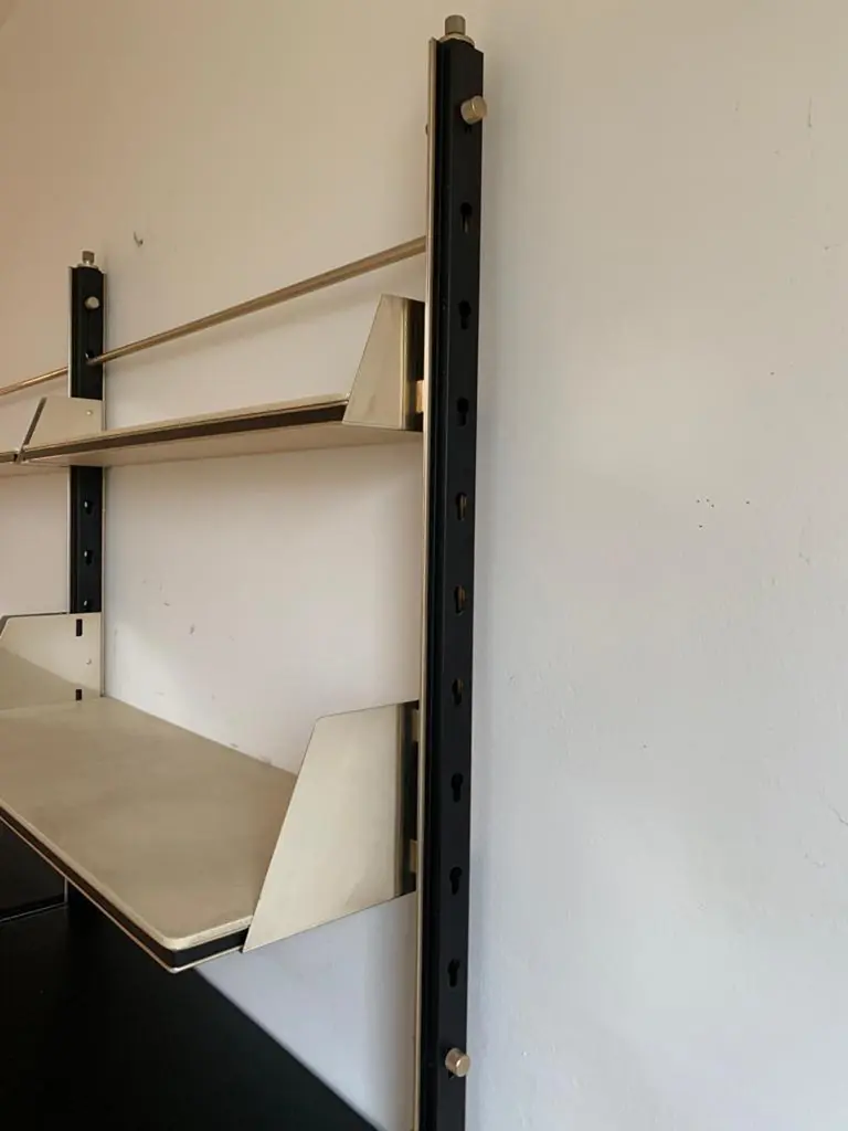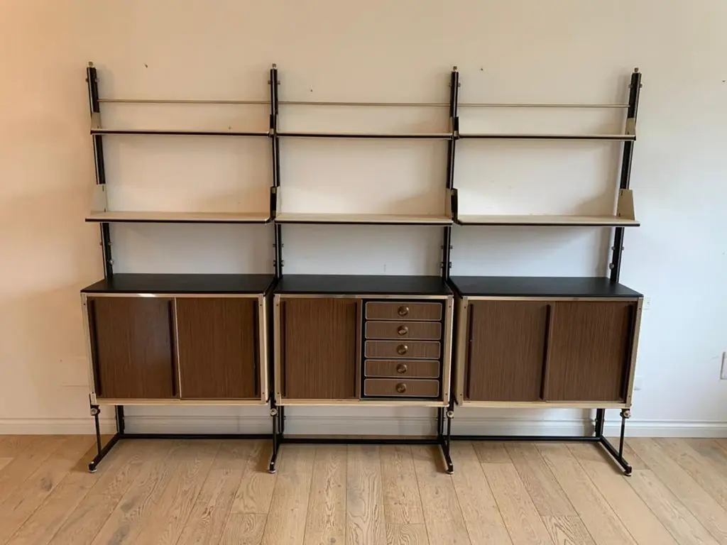 Modular bookcase unique in style, design, planning and materials. The Mascagni company for the excellent quality and uniqueness of its products boasted in the 50's a reference of exclusivity for luxury furniture, Harrods stores agreed to a distribution of products. Materials Wood, laminate, vinyl, steel, brass, aluminum. The bookcase can be assembled, disassembled and adjusted by hand through comfortable small parts. The furniture is in good condition and it will be our care to further verification before delivery. Packing in wooden crates for wall units.