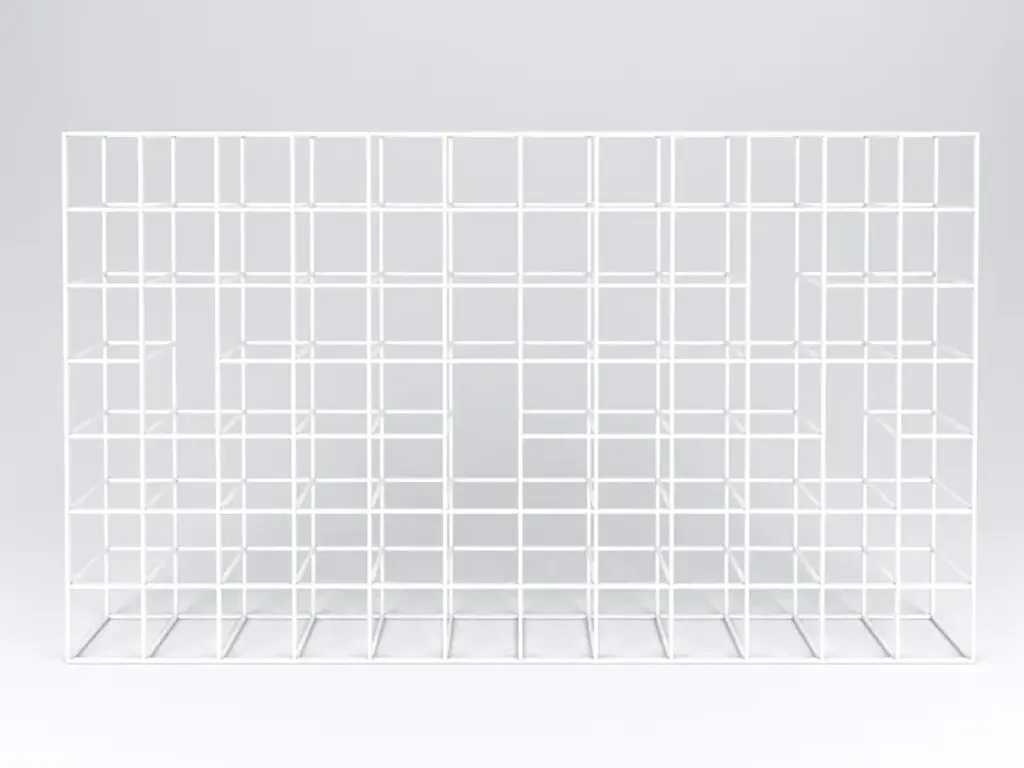 Designed by Shiro Kuramata, Bookshelf is a two-sided module made of white matte lacquered panels. The particularity of this bookshelf is the varying size of the compartments, which perfectly reflects Kuramata’s idea that the volume of space required by each object must be proportionate to its dimensions.In this piece, the extreme visual lightness is paired with the net solidity. Suitable for use alone, where it becomes almost sculptural, Bookshelf can also become a continuous bookcase when composed with numerous modules, or be used to divide a space while still allowing light and air to pass through.Structure: medium-density fibre conglomerate panelsStructure finish - matt lacquer: 01 whiteNoteOpen compartments have different dimensions