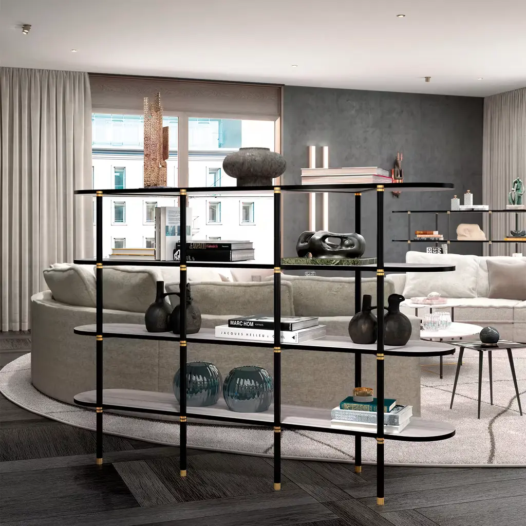 Boomerang Black Metal And Brass Bookcase With 4 Shelves By Pietro Russo Design