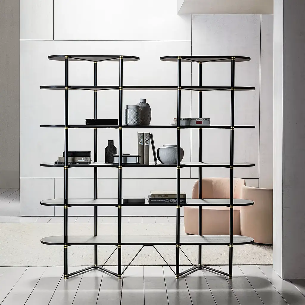 Boomerang Black Metal And Brass Bookcase With 6 Shelves By Pietro Russo Design