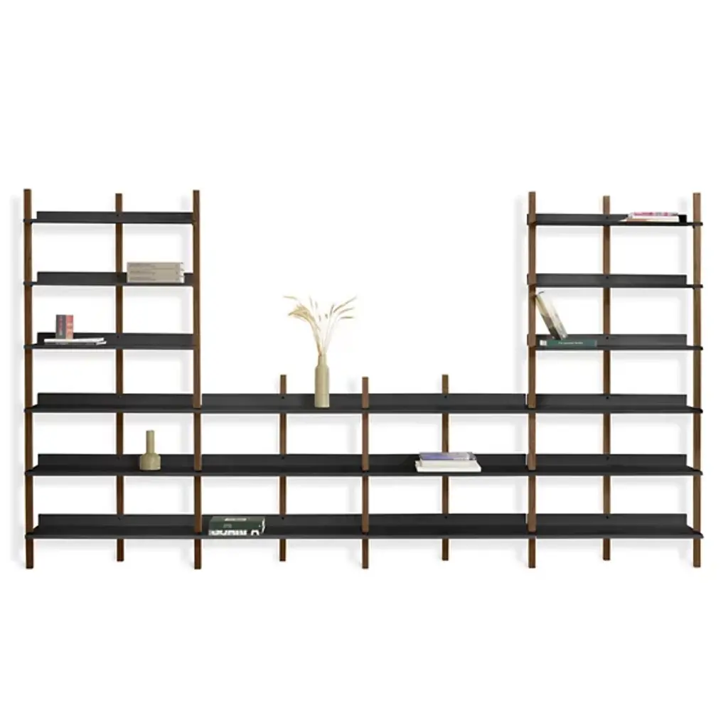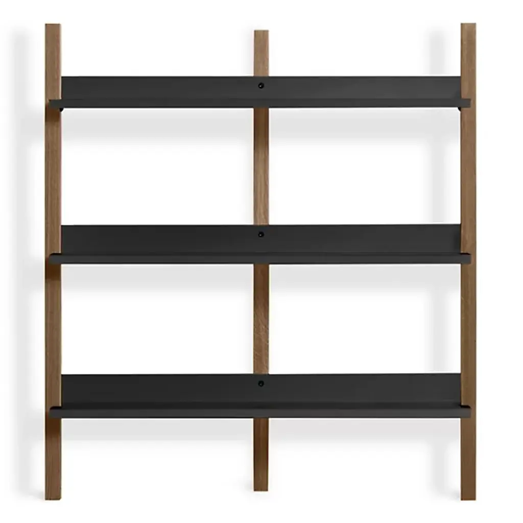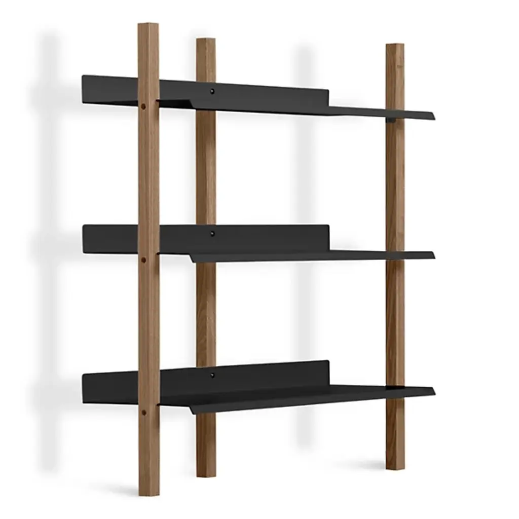 Tell a new story with your book display using the Browser Bookcase from Blu Dot. This adaptable wall-mounted shelving system is crafted to function independently or expand to accommodate evolving needs. Crafted with durable wood uprights and elegant aluminum shelves, Browser provides generous storage for vinyl records, book collections, and cherished items making the items displayed the center of attention. Effortlessly adjust its nylon glides for precise leveling. Boasting clean lines and a minimalist aesthetic, Browser embodies contemporary simplicity, while its wood elements infuse a sophisticated artisanal modern flair, showcasing impeccable craftsmanship and meticulous attention to detail.