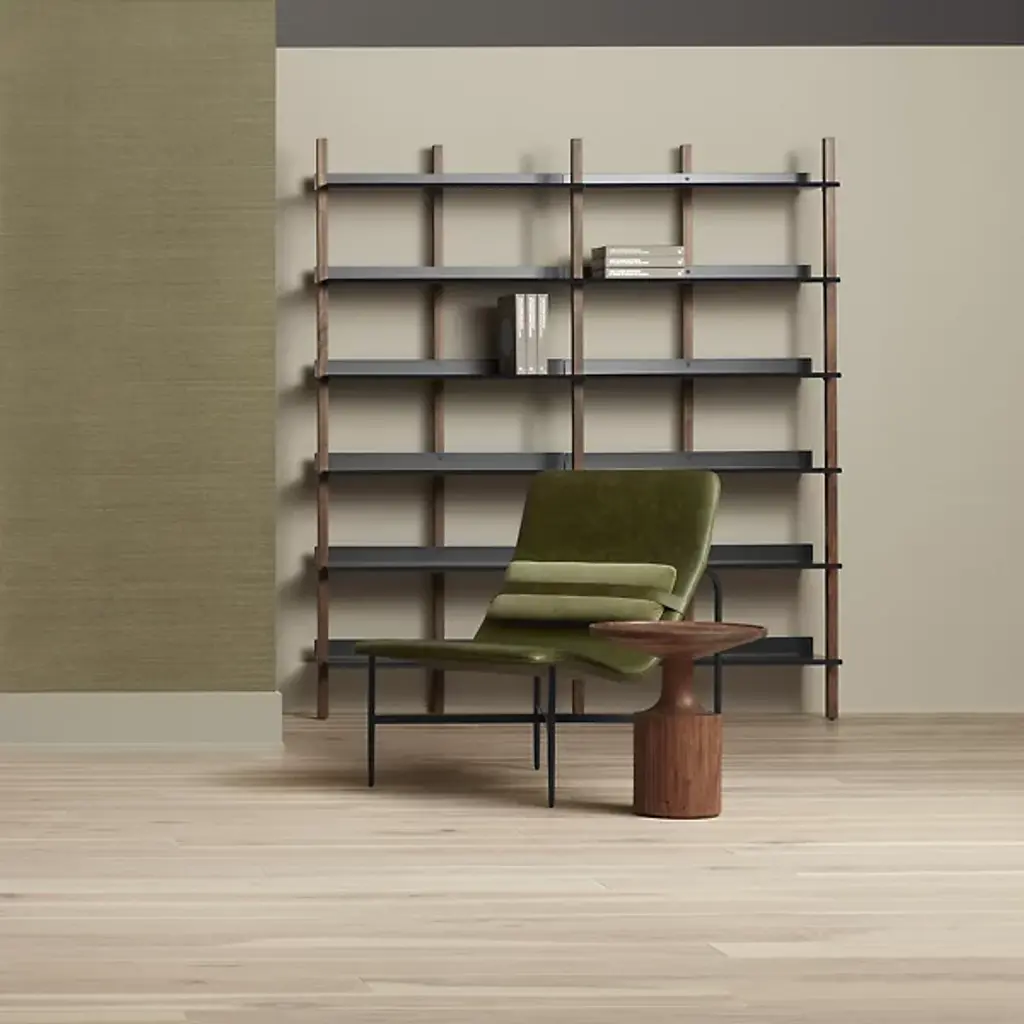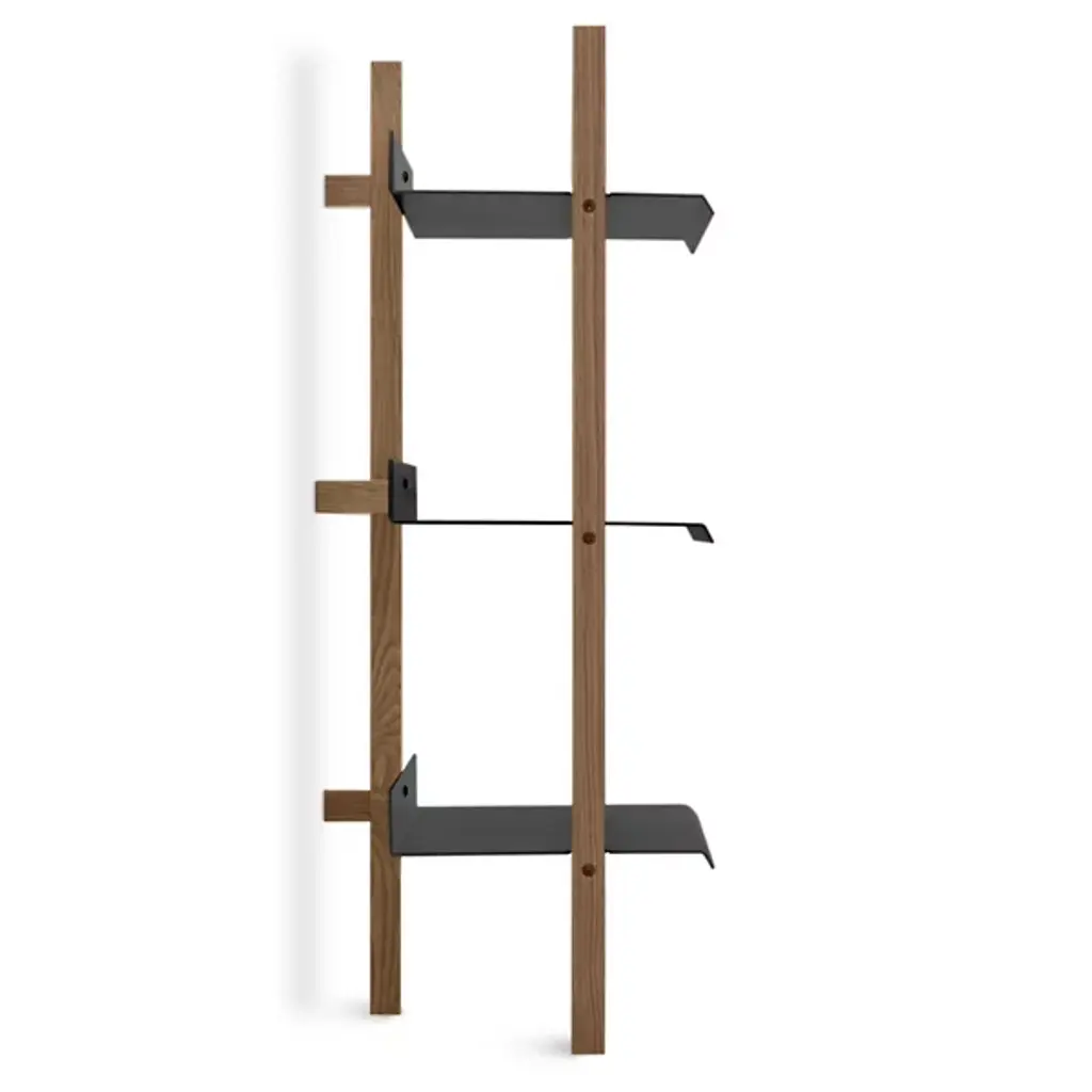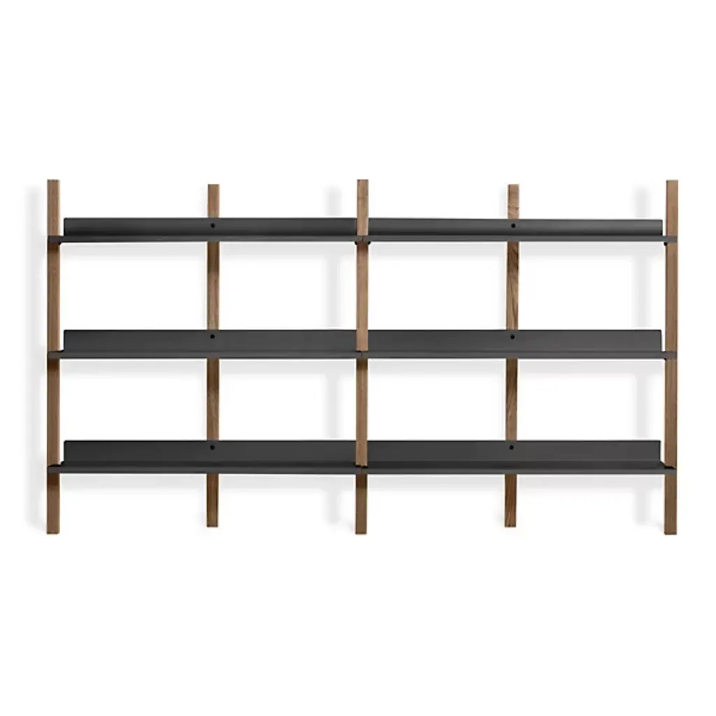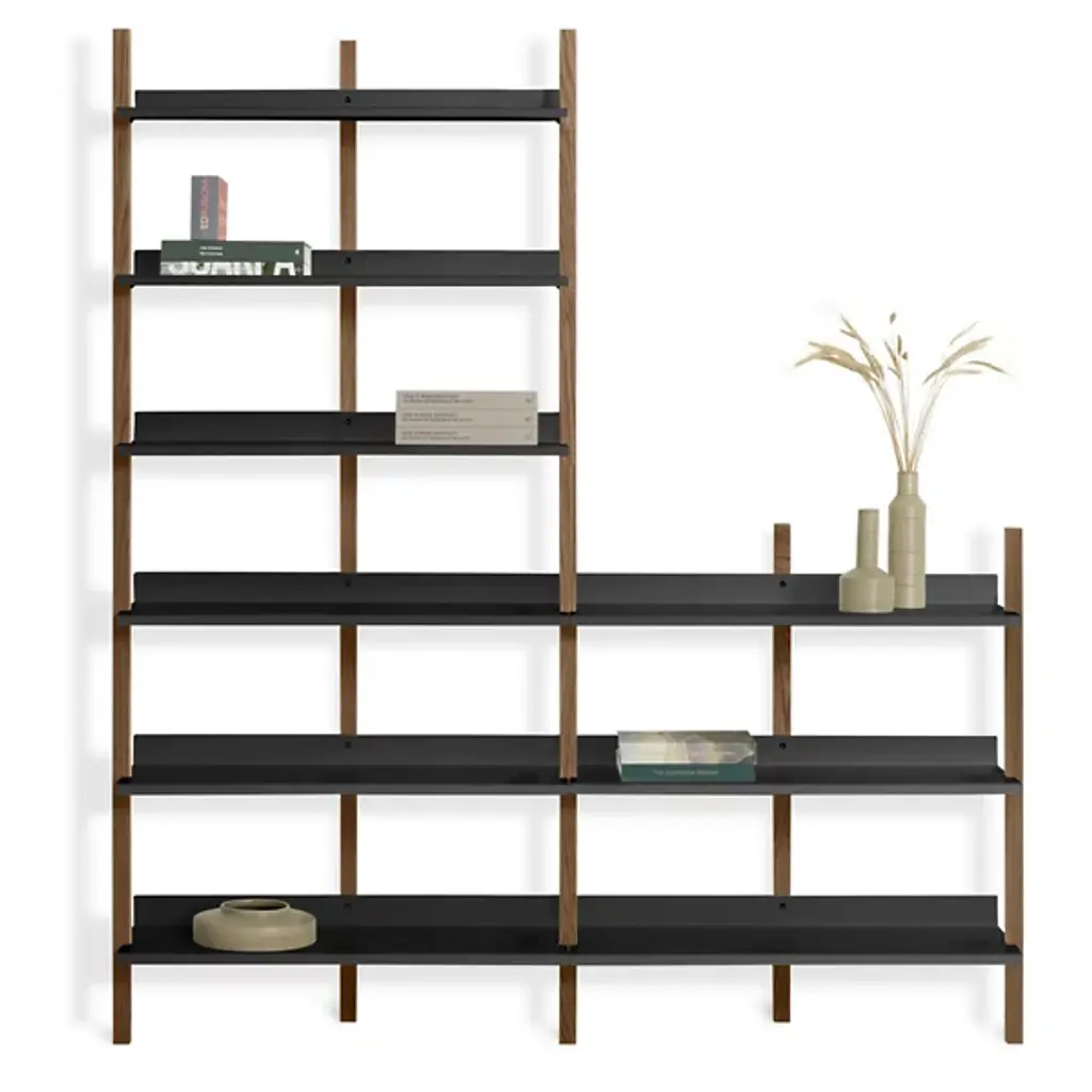 Tell a new story with your book display using the Browser Bookcase from Blu Dot. This adaptable wall-mounted shelving system is crafted to function independently or expand to accommodate evolving needs. Crafted with durable wood uprights and elegant aluminum shelves, Browser provides generous storage for vinyl records, book collections, and cherished items making the items displayed the center of attention. Effortlessly adjust its nylon glides for precise leveling. Boasting clean lines and a minimalist aesthetic, Browser embodies contemporary simplicity, while its wood elements infuse a sophisticated artisanal modern flair, showcasing impeccable craftsmanship and meticulous attention to detail.