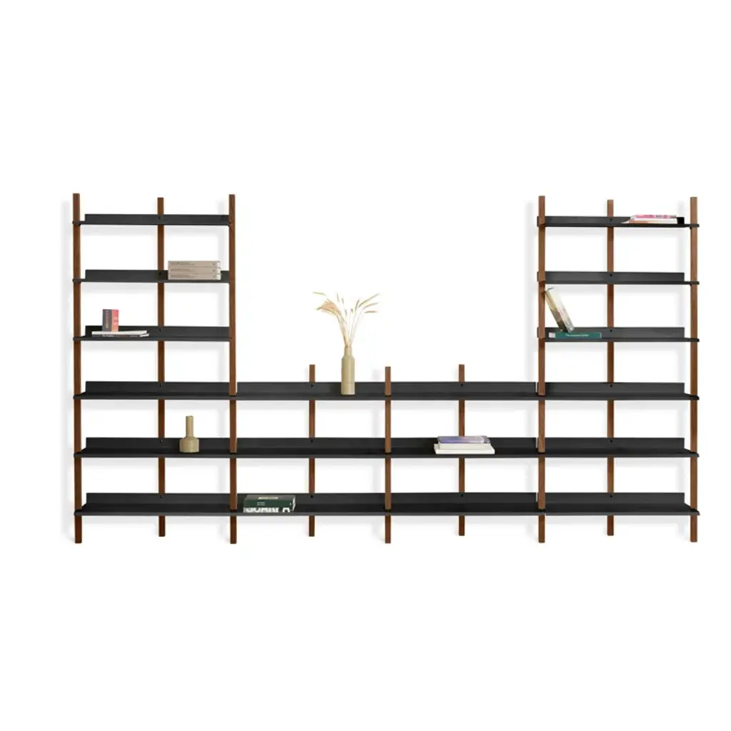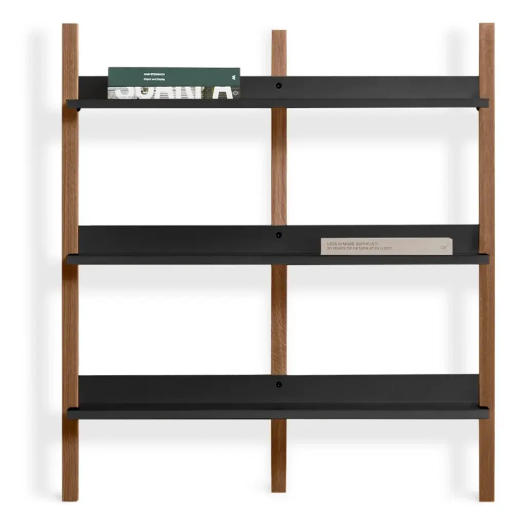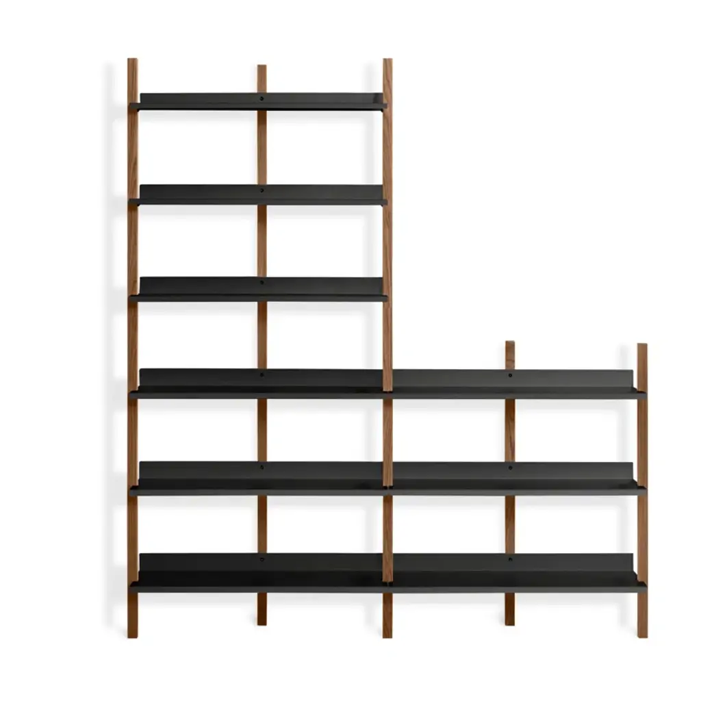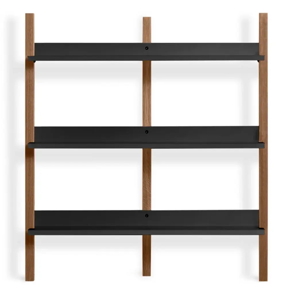 Be your own search engine. Browser is a wall-mounted shelving system designed to be a capable solo unit or added to (endlessly) as needed. With wood uprights and steel shelves, Browser can accommodate piles of vinyl, books galore, and multitudinous collections.