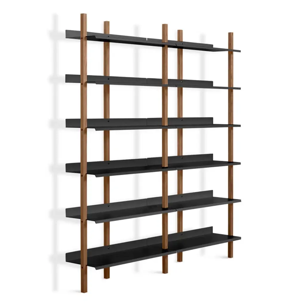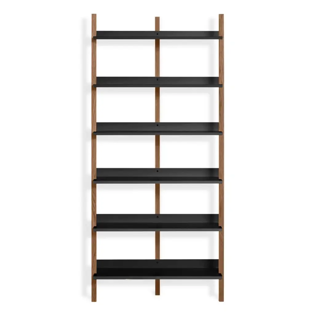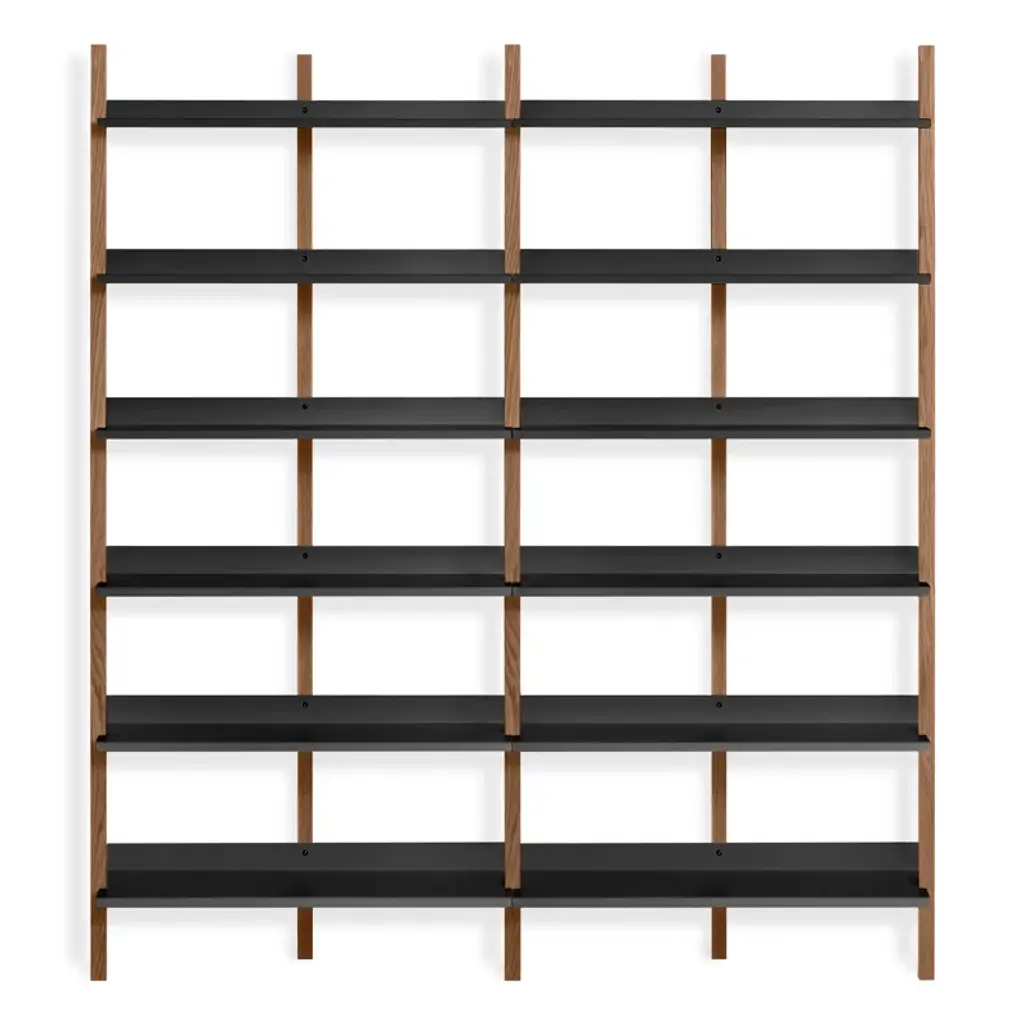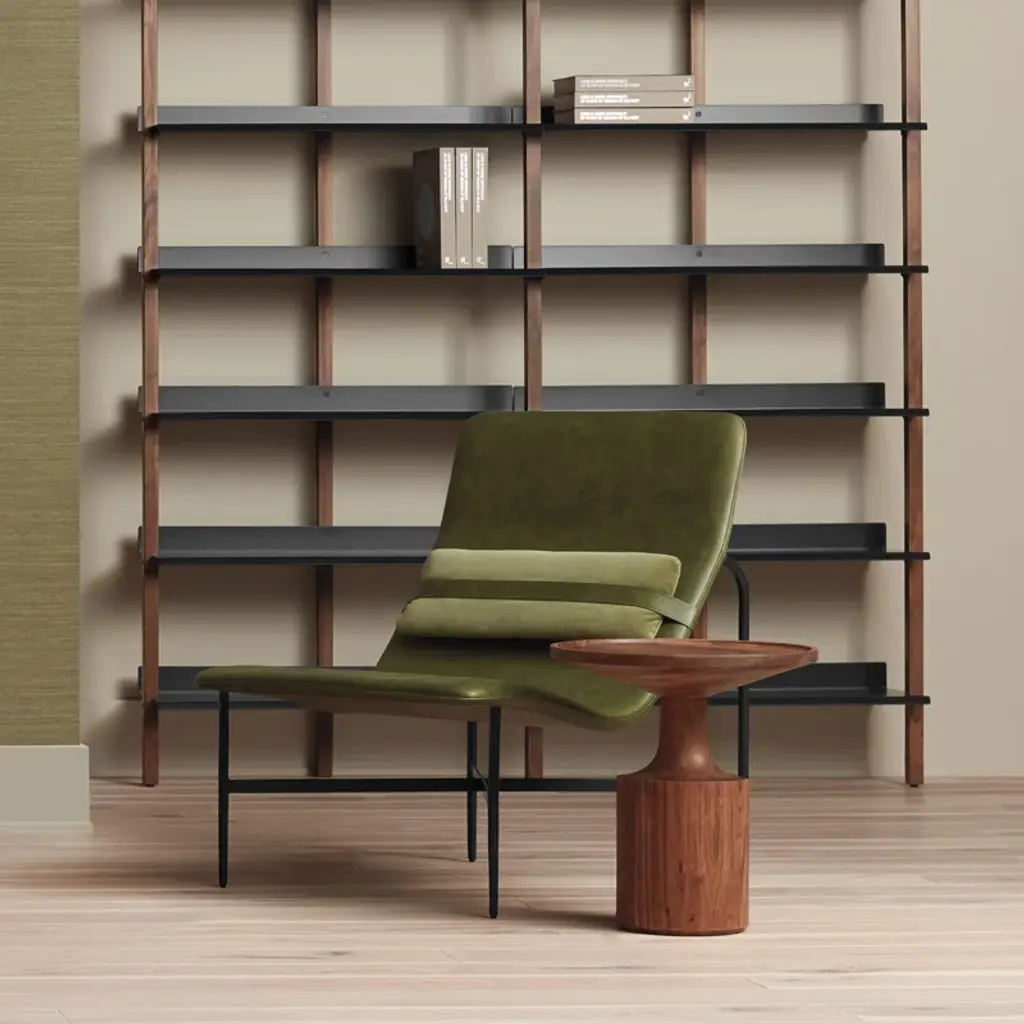 Be your own search engine. Browser is a wall-mounted shelving system designed to be a capable solo unit or added to (endlessly) as needed. With wood uprights and steel shelves, Browser can accommodate piles of vinyl, books galore, and multitudinous collections.