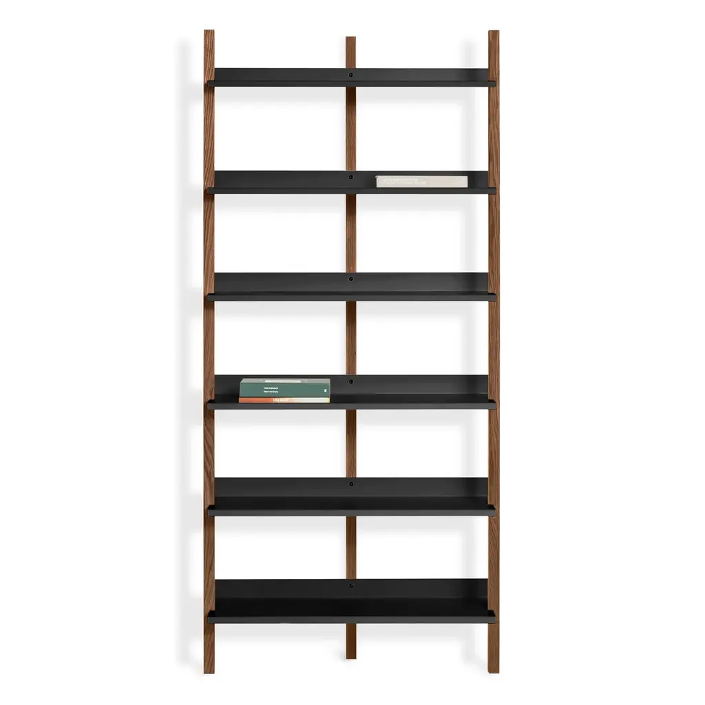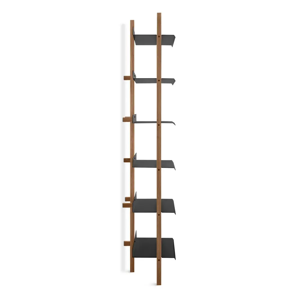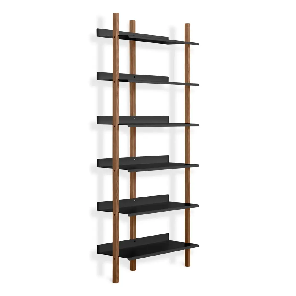 Be your own search engine. Browser is a wall-mounted shelving system designed to be a capable solo unit or added to (endlessly) as needed. With wood uprights and steel shelves, Browser can accommodate piles of vinyl, books galore, and multitudinous collections.