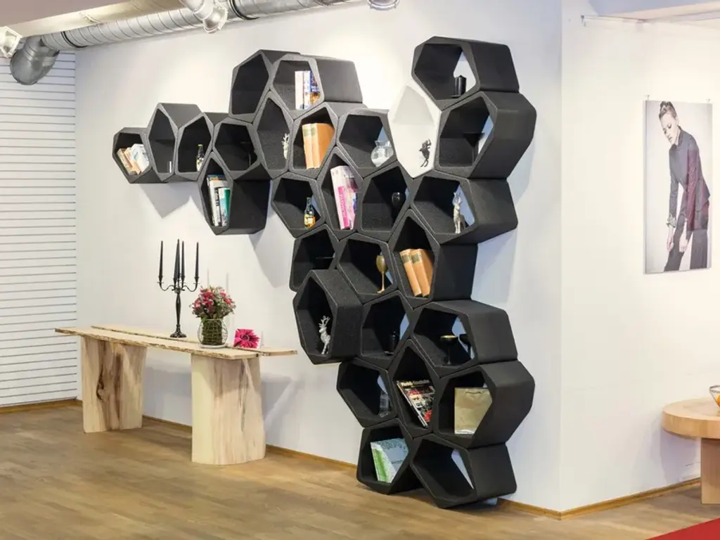 BUILD is a single modular element is the essence of this new shelving system. With BUILD, the sky’s the limit. The system permits you to ‘design’ your own composition and to construct an endless variety of configurations and forms.As shelving or partition, freestanding or mounted on the wall, BUILD adapts to your needs. You can get even more creative by giving BUILD new functions. An individual element can perfectly double as transport box or seating. BUILD is quick and easy to install and can be reconfigured in minutes, with any number of units, anywhere. No instructions, no tools– we promise! A flexible and durable system, BUILD works in the following environments: - Retail: product displays, wall cladding, back drops. Special: ideal for pop-up stores. - Office: shelving and partitioning. Special: ideal for frequent workplace re-designs and, co-working spaces. - Exhibitions and fairs: booths, product displays, seating.