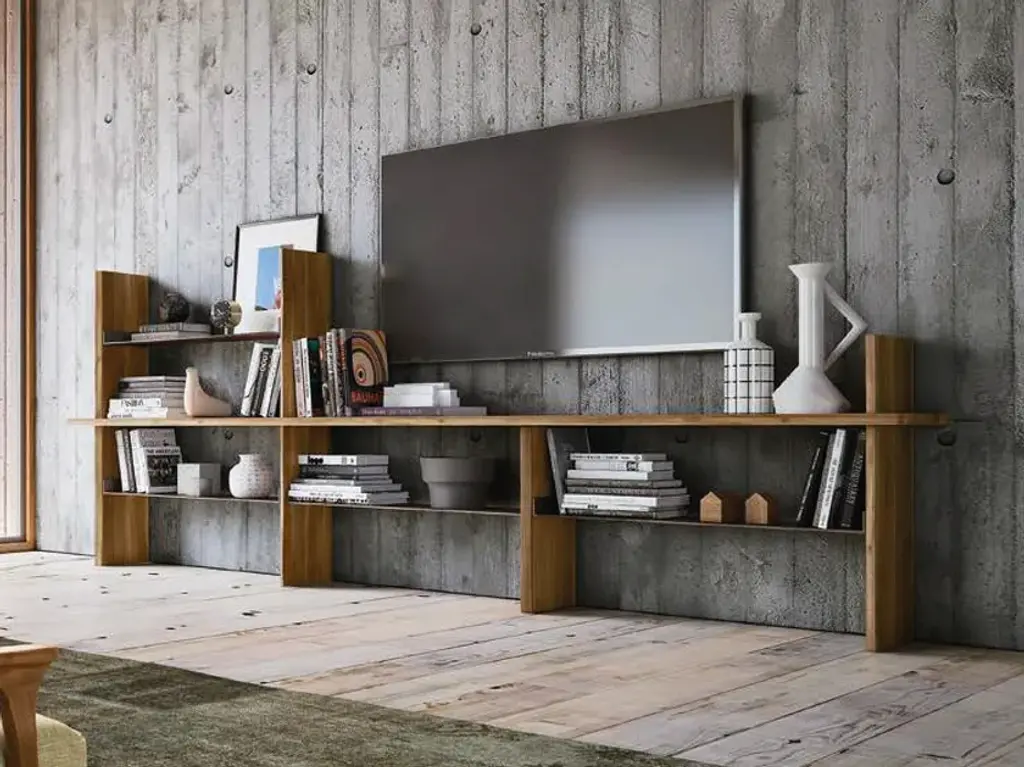 Dale Italia bookcases can also serve as a replacement for walls, dividing spaces according to your specific requirements.• Colour: Natural Walnut• Finish: OilComposition:Back panel for stripped wood bookcase (x 2)Back panel for stripped wood bookcase (x 2)Shelf for stripped wood bookcase, 3 compartments (x 1)Shelf in rusted metal L. 90 (x 4)