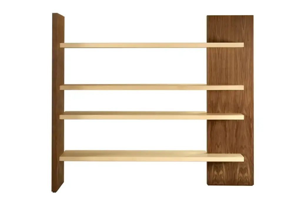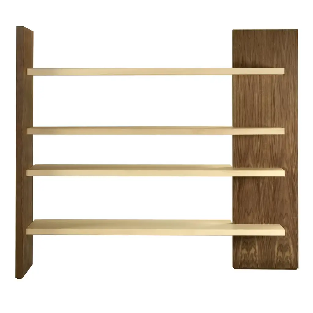 art.3401 - Cartesia - Open bookcase with 4 shelves made of maple and walnut wood, here in the natural finish. Size: L 212 W 55 H 190