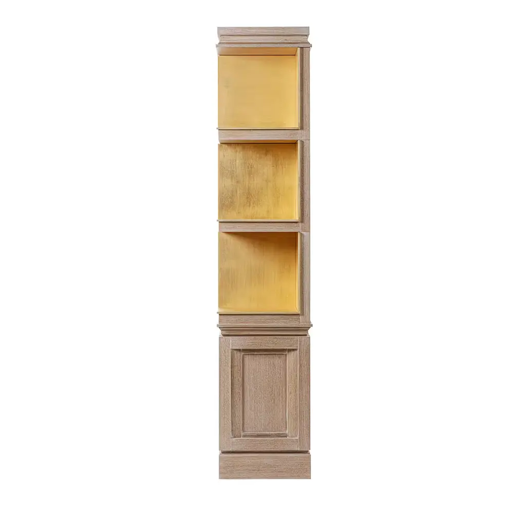 Astonishingly elegant in its clean and essential design, this bookcase will effortlessly complement both traditional or modern interiors imbuing any living room with subtle charm and sophistication. Fashioned of lacquered wood, it features two compartments and eight adjustable shelves in total. The piece is enhanced with refined details in delicate gold leaf.