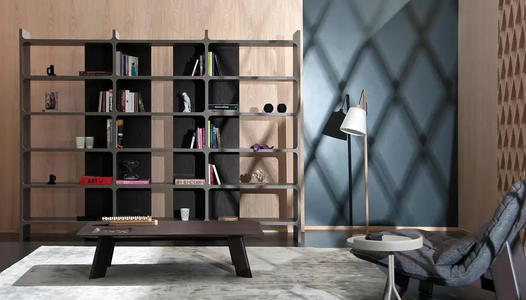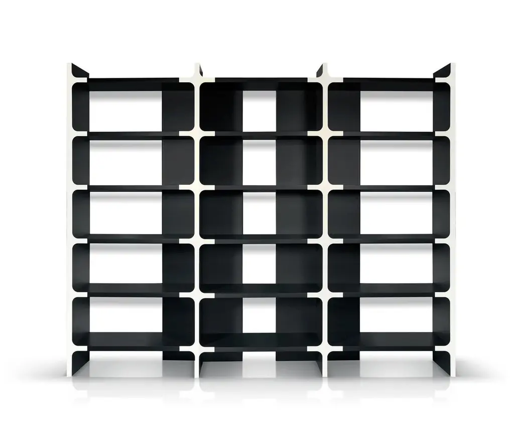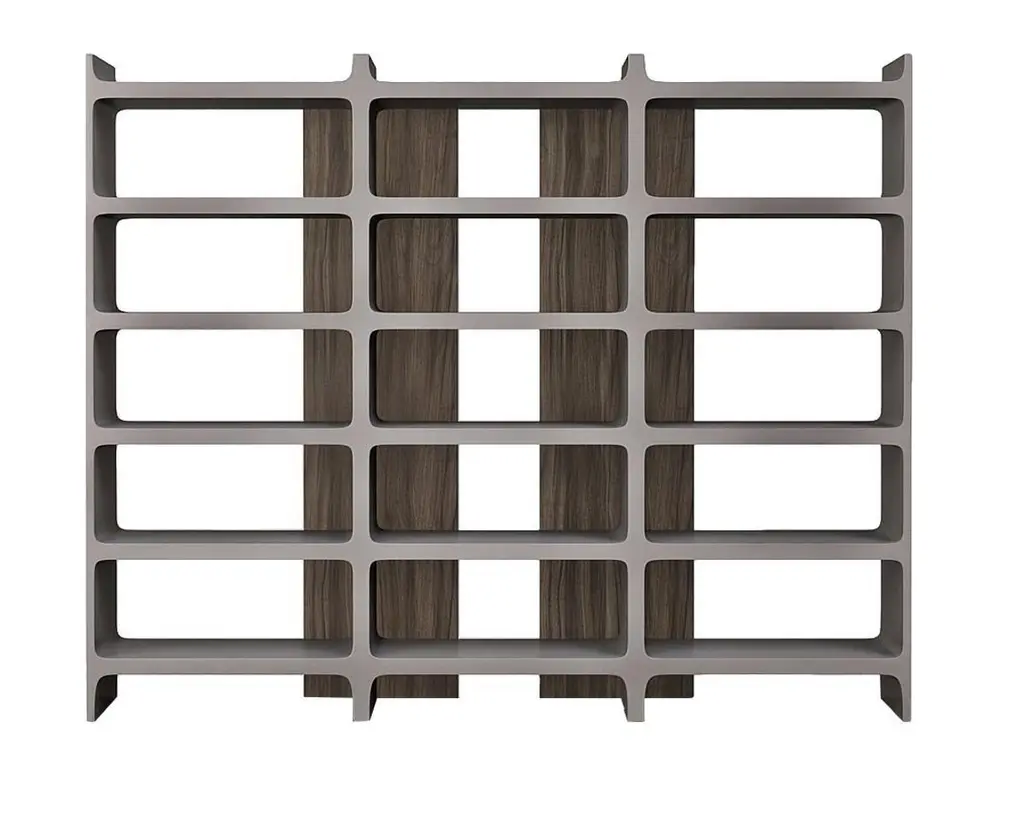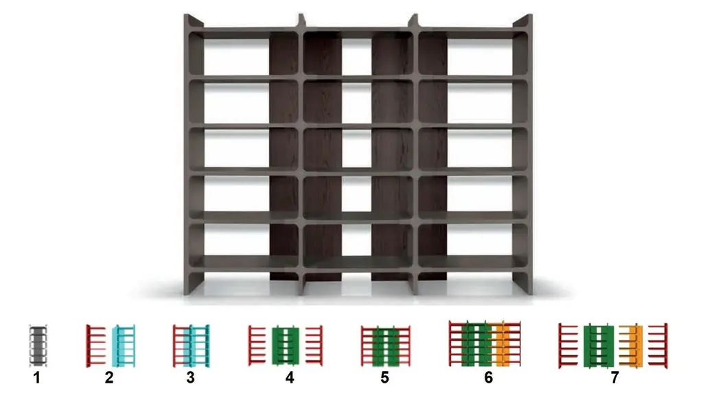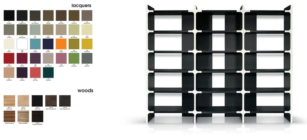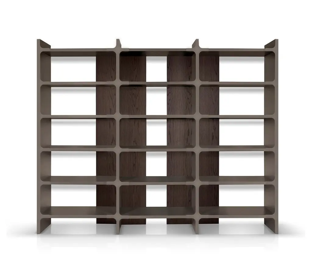 Modular bookcase that is available in various sizes. It consists of shelves, back panels and fronts in the shape of a cross. The back panels and the shelves can be either wood veneer or lacquered wood. The fronts cross are always lacquered.Please contact us if you have any questions about customization and pricing. We will be glad to check with the factory’s technical team if sizes, finishes, and colors can be customized. We do our best to expedite production and to ship and deliver product within the listed lead time, however current lead times might be longer due to global shipping backlog and delays. These delays are out of our control and cannot be a reason to cancel an order.