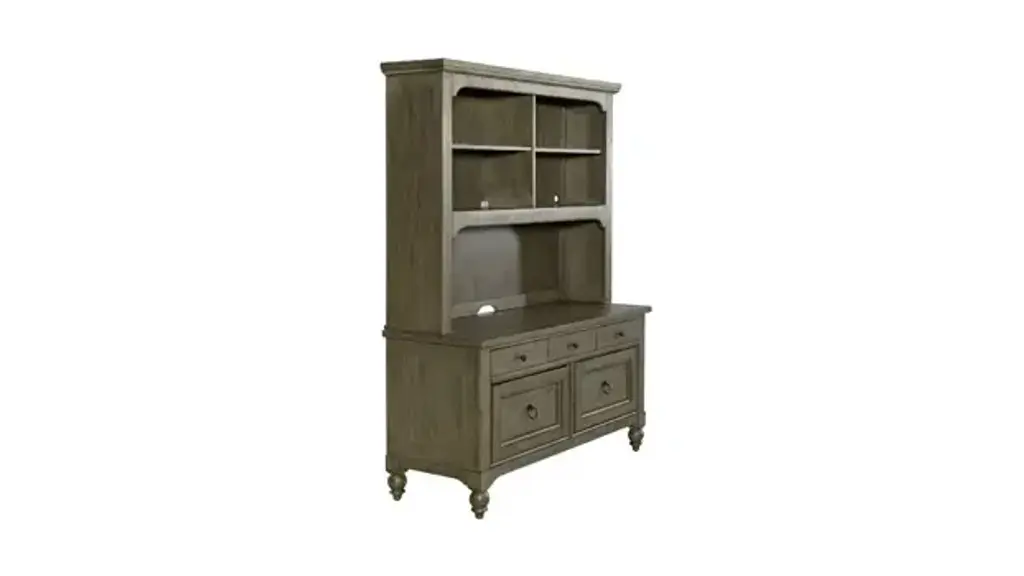 Hardworking file cabinet below, stylish glass-door cabinet above—this storage sensation offers room for files plus ample display space for favorite keepsakes and awards. Customizable in your choice of wood and hardware finish and versatile enough to use outside your office, too.