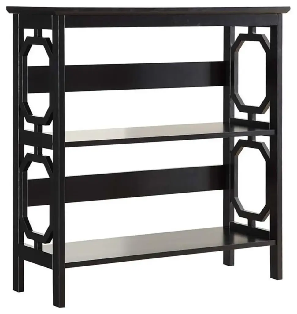 The Convenience Concepts Omega Two-Shelf Bookcase is a great addition to any home office. Featuring three spacious shelves that allow plenty of space for anything from books to collectibles. The Omega bookcases easily fit with most decor so you can enjoy them for years to come. And since they're made of wood, you can be sure they will hold up well and look nice through all those years. Coordinating pieces are also available sold separately.Features:Beautiful black wood finishQuick and Easy Set UpThree Spacious Tiers32.5" H x 11.75" W x 31.5" DWill Complement any Existing FurnishingsWill Provide Years of EnjoymentSpecifications:Product Dimensions: 32.5" H x 11.75" W x 31.5" DProduct Weight: 26 lbs