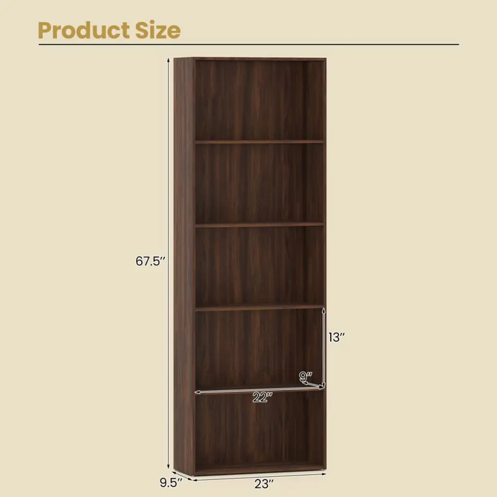 Costway 5-shelf Storage Bookcase Stand Modern Multi-functional Display Cabinet Walnut