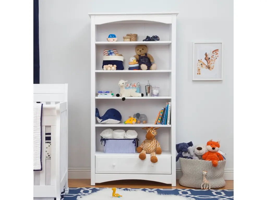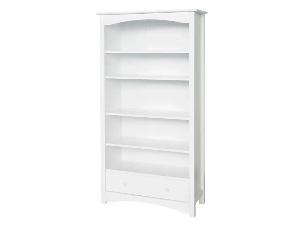 The MDB bookcase offers plenty of storage options with its five adjustable shelves and one smooth and spacious drawer. Keeping your child's favorite books and toys handy, the bookcase brings timeless charm to his or her room with classic lines and gentle curves. The MDB bookcase is available in five rich and traditional finishes. Its versatile style complements a wide range of nursery decor.