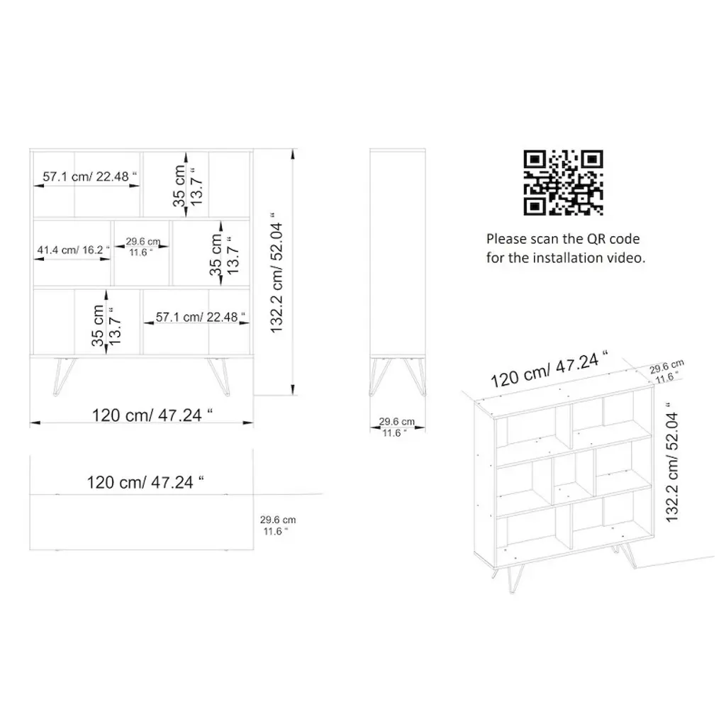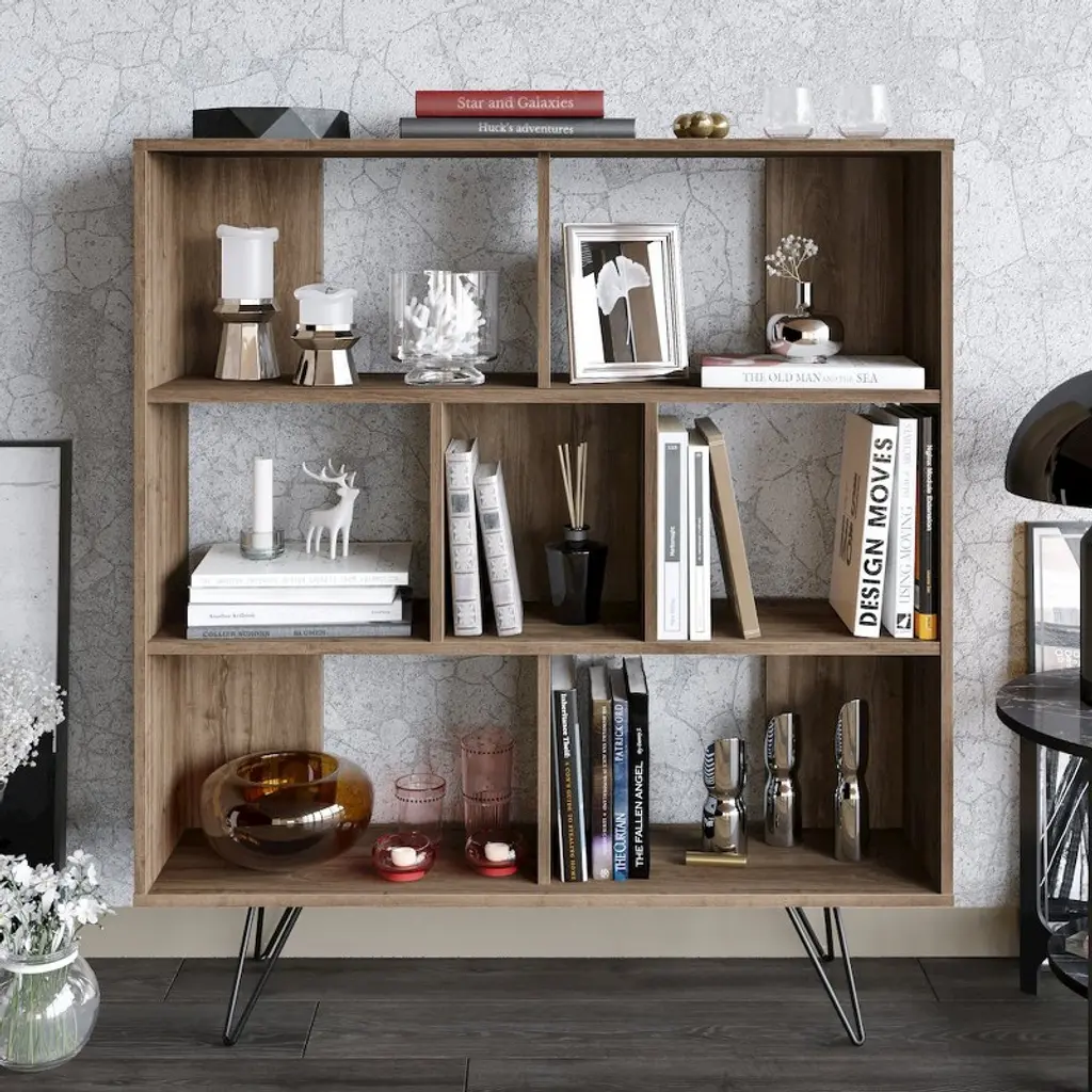 With 6 half-open shelves and a cubby in the middle, the bookshelf provides a lot of space for storing your books, magazines, and other collections. The shelves are made of 18mm thick standard quality melamine coated particle board and banded with first-class PVC edge banding tape. The legs are constructed from metal and coated with impact and scratch resistant static paint. It is manufactured using eco-friendly and health-friendly TSE certified materials. The product will be delivered to the customer in the original package as disassembled. It is designed to be assembled by the customer easily using simple household tools like a power drill.