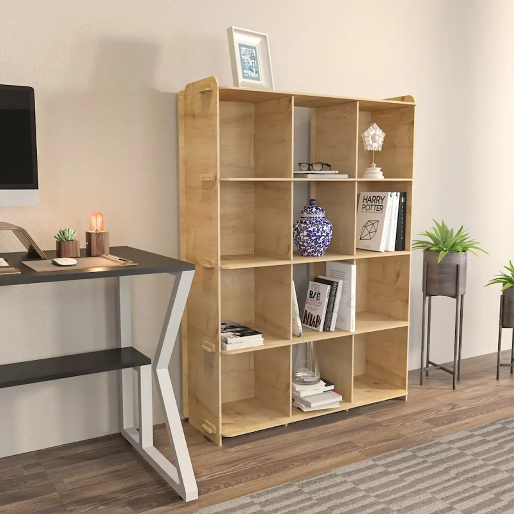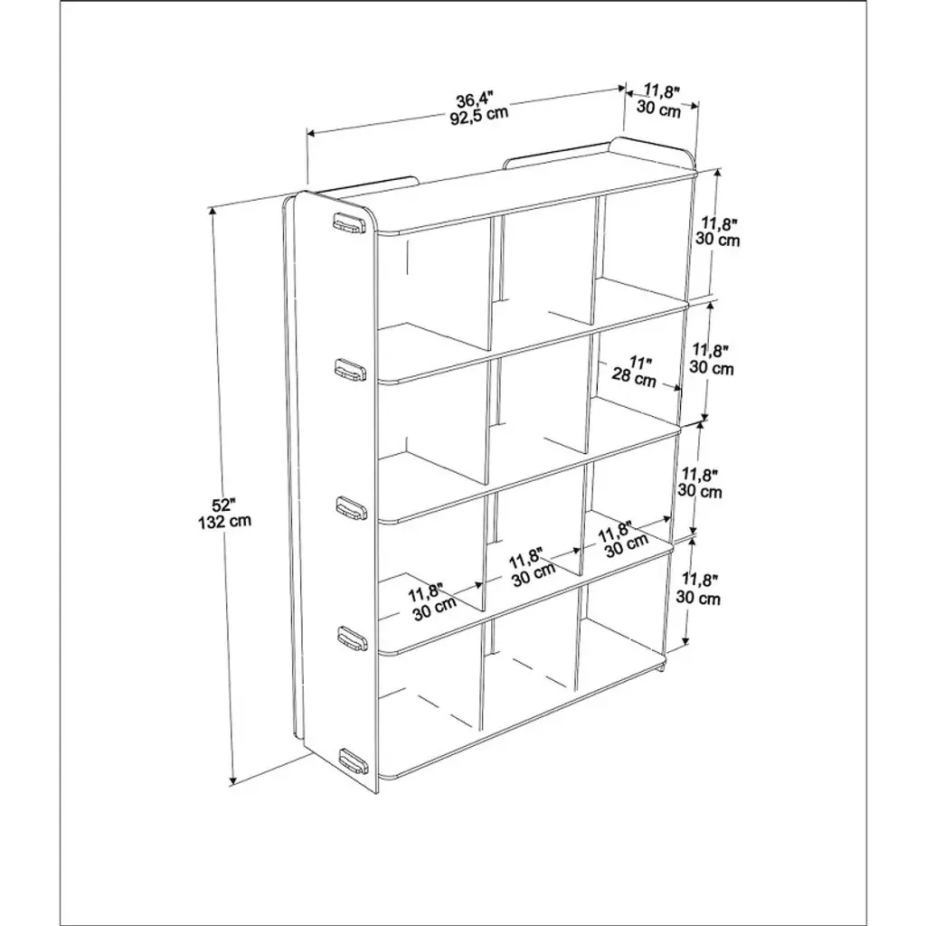 Transform your home decor with the Bookshelf, a stylish and functional storage solution that adds a touch of modern elegance to any room. With four tiers and three cubbies in each tier, you'll have ample space to organize and display your favorite books, magazines, and decorative items.Crafted from high-quality 8mm MDF, the Bookshelf is durable, long-lasting, and built to withstand daily use. The screwless design makes assembly a breeze, so you can enjoy your new bookshelf in no time. Plus, the eco-friendly and health-friendly materials ensure that your home remains safe and healthy.