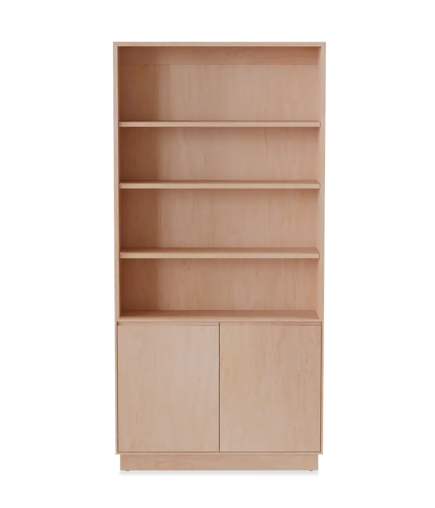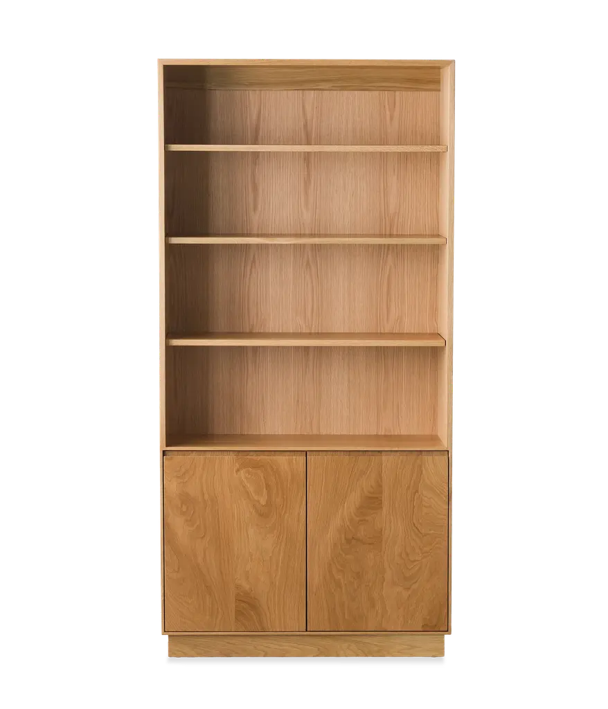 The Douglas tall bookcase - stow board games in the lower cabinet and display your favorite books and art in the open, adjustable shelves above. Doors feature vertical grain hardwood and have soft close hinges.