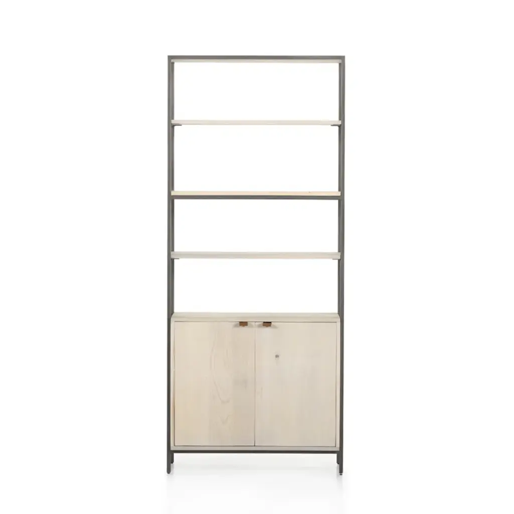 Made from rich veneered walnut and a black powder coated steel frame, the Drake 73" narrow bookcase brings amodern flair to your space. It gives you the storage you need to display your favorite books and decor and features hidden storage space for the things you don't want everyone to see. Pair two of these besides a matching Drake desk and you have yourself a home office look that is sure to make all the real offices jealous.
