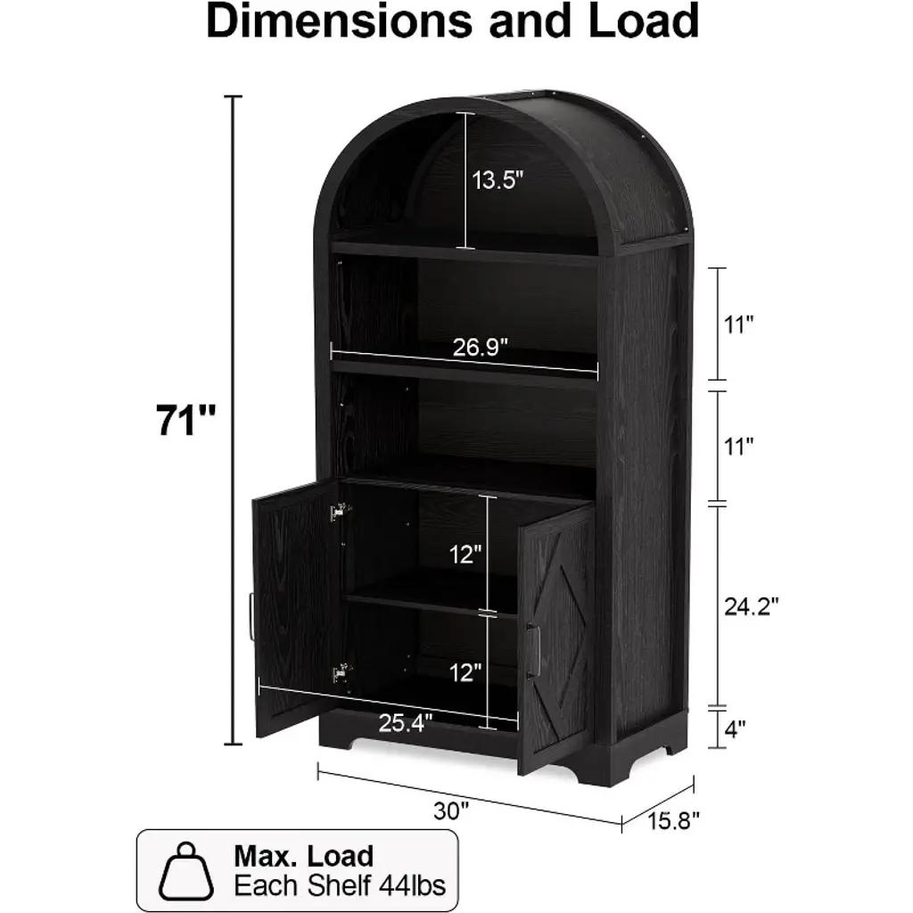 Dyonery 71" Tall Arched Bookcase Cabinet With Doors,5 Tier Mid-century Modern Arched Cabinets With Storage&open Adjustable Shelves,for Any Room, Black