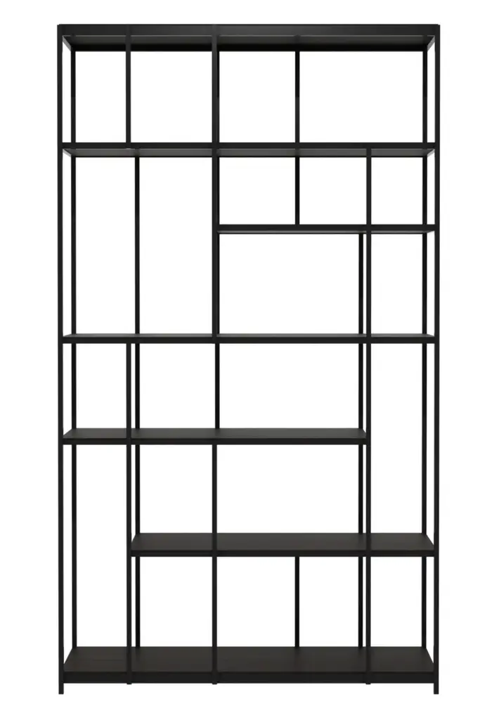 Introduce style and warmth to your living or office space with the Eiffel Bookcase from Sunpan. Crafted with care in antique brass or matte black iron, this piece adds impact and functionality to your space, especially when paired or multiplied. With multiple levels and different sized spaces to choose from, you can easily store books, decor, and even your favorite vinyl. For safety, an anti-tipping kit is included. Highlights