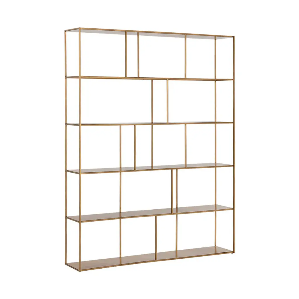 Introduce style and warmth to your living or office space with the Eiffel Bookcase from Sunpan. Crafted with care in antique brass or matte black iron, this piece adds impact and functionality to your space, especially when paired or multiplied. With multiple levels and different sized spaces to choose from, you can easily store books, decor, and even your favorite vinyl. For safety, an anti-tipping kit is included. Highlights