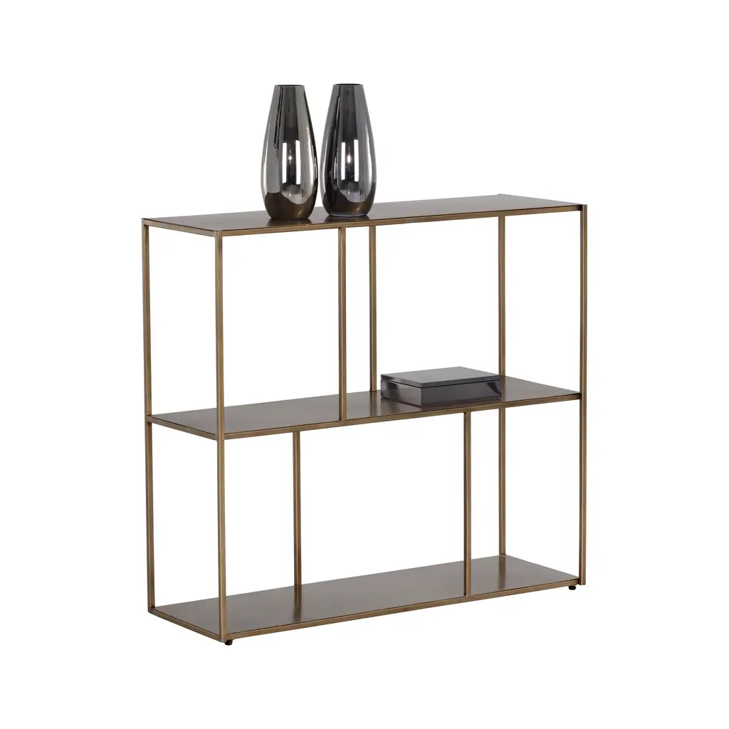 Introduce style and warmth to your living or office space with the Eiffel Bookcase from Sunpan. Crafted with care in antique brass or matte black iron, this piece adds impact and functionality to your space, especially when paired or multiplied. With multiple levels and different sized spaces to choose from, you can easily store books, decor, and even your favorite vinyl. For safety, an anti-tipping kit is included. Highlights