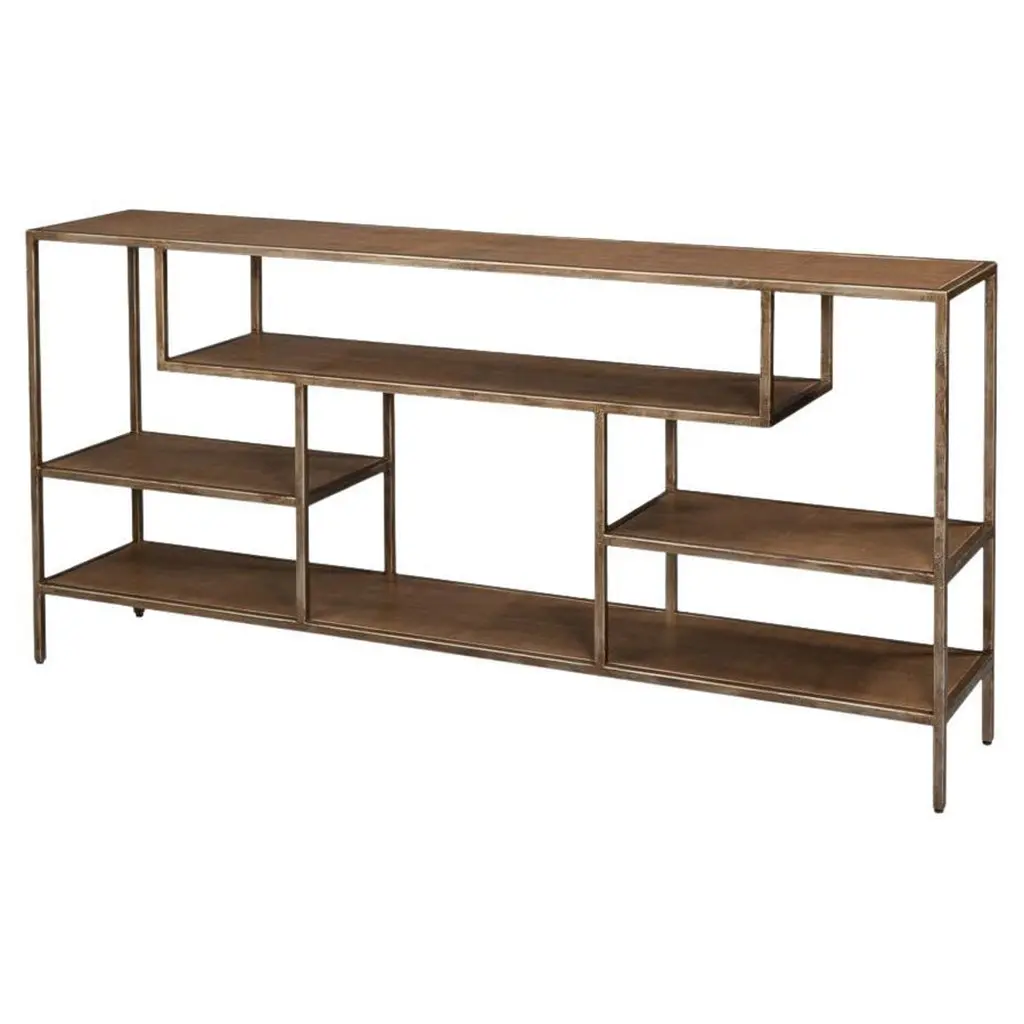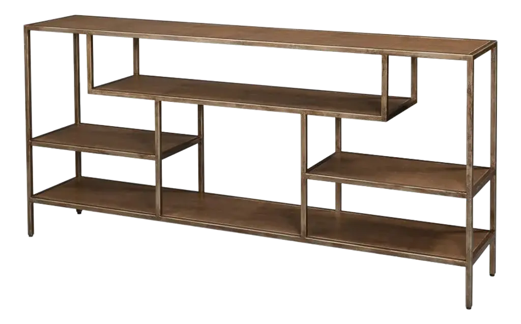 Introduce style and warmth to your living or office space with the Eiffel Bookcase from Sunpan. Crafted with care in antique brass or matte black iron, this piece adds impact and functionality to your space, especially when paired or multiplied. With multiple levels and different sized spaces to choose from, you can easily store books, decor, and even your favorite vinyl. For safety, an anti-tipping kit is included. Highlights