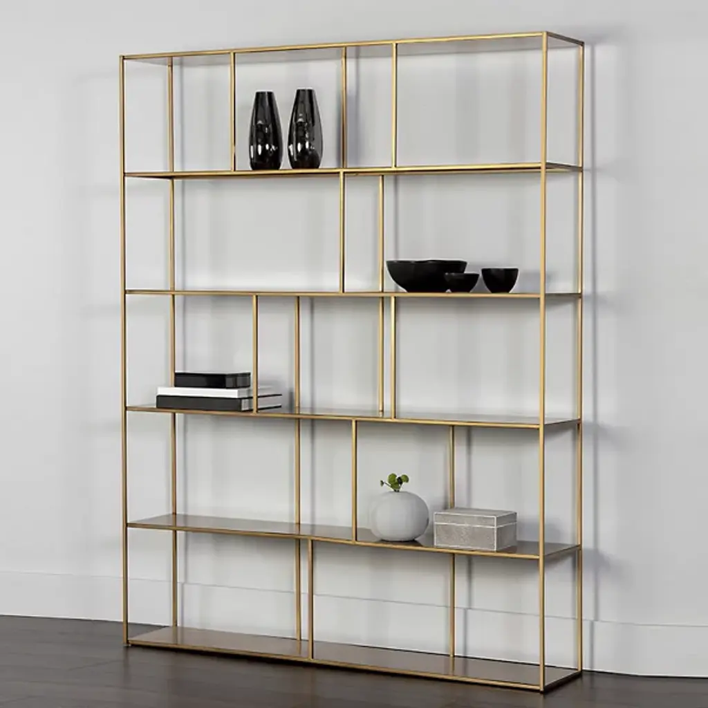 The Eiffel Bookcase from Sunpan brings industrial sophistication to any space. Made in Vietnam from robust iron, this architectural piece combines clean lines with purposeful design, creating an open showcase to display for books, art, and treasured objects. Its striking silhouette and durable construction refuse to overpower any items placed on it, offering both visual appeal and practical storage. The bookcase is a versatile addition that adds warmth and contemporary character to any interior setting, providing ample storage accompanied by slender vertical elements.