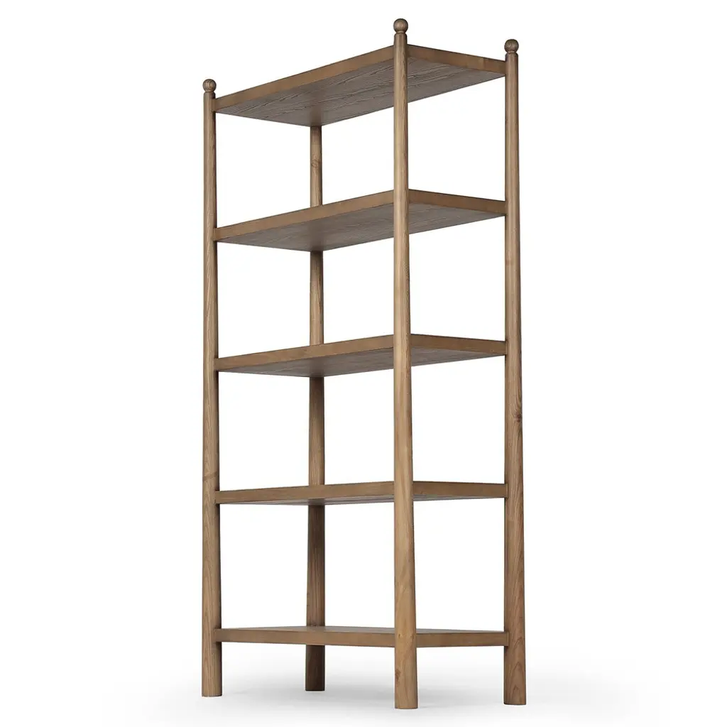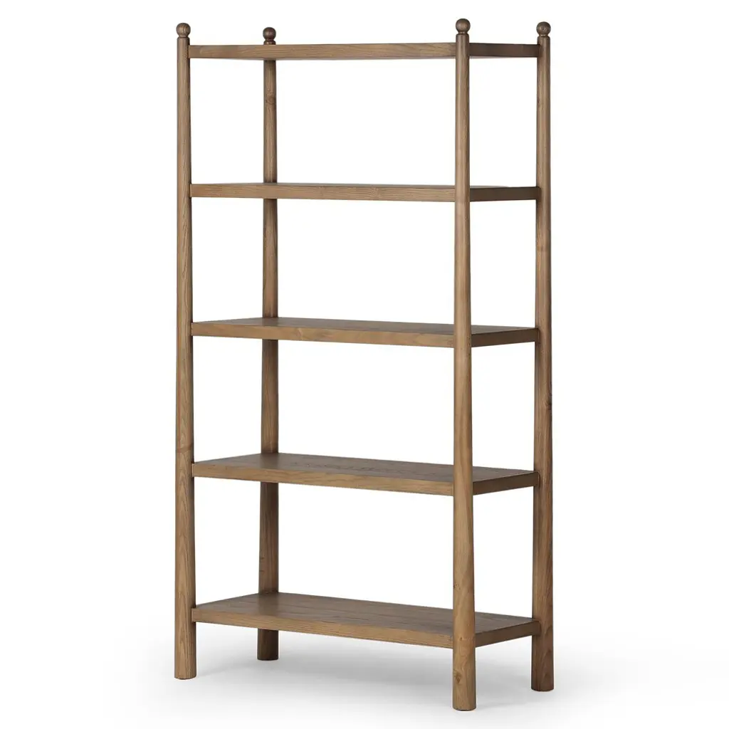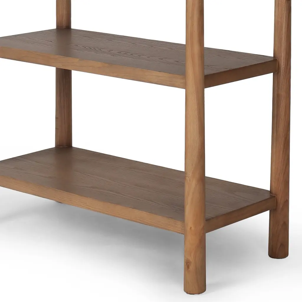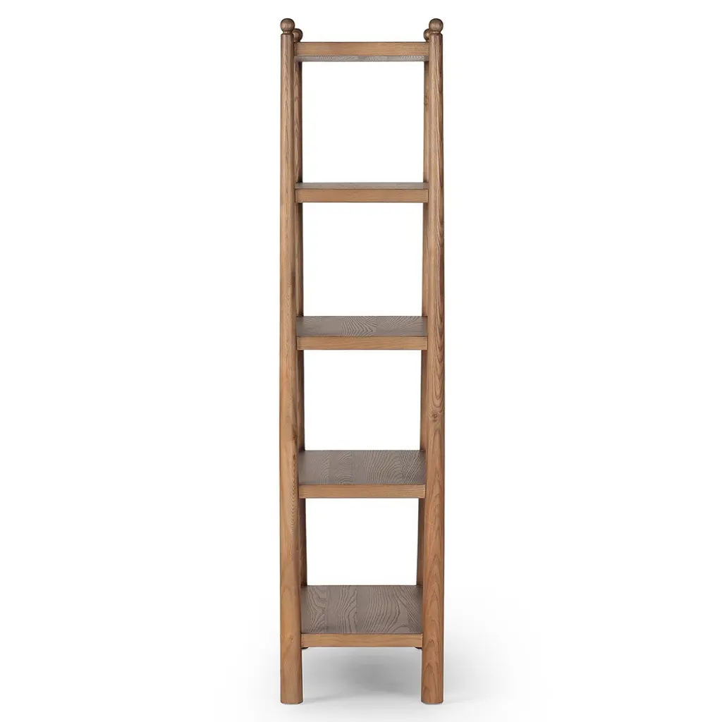 A design collaboration by Amber Lewis and Four Hands. Tiers of amber-finished ash offer space for storage and display. Turned ball detailing and tapered legs bring a design-driven touch to a simple, open bookcase.