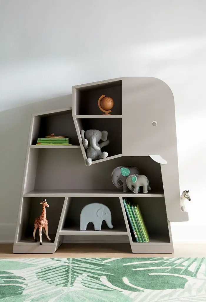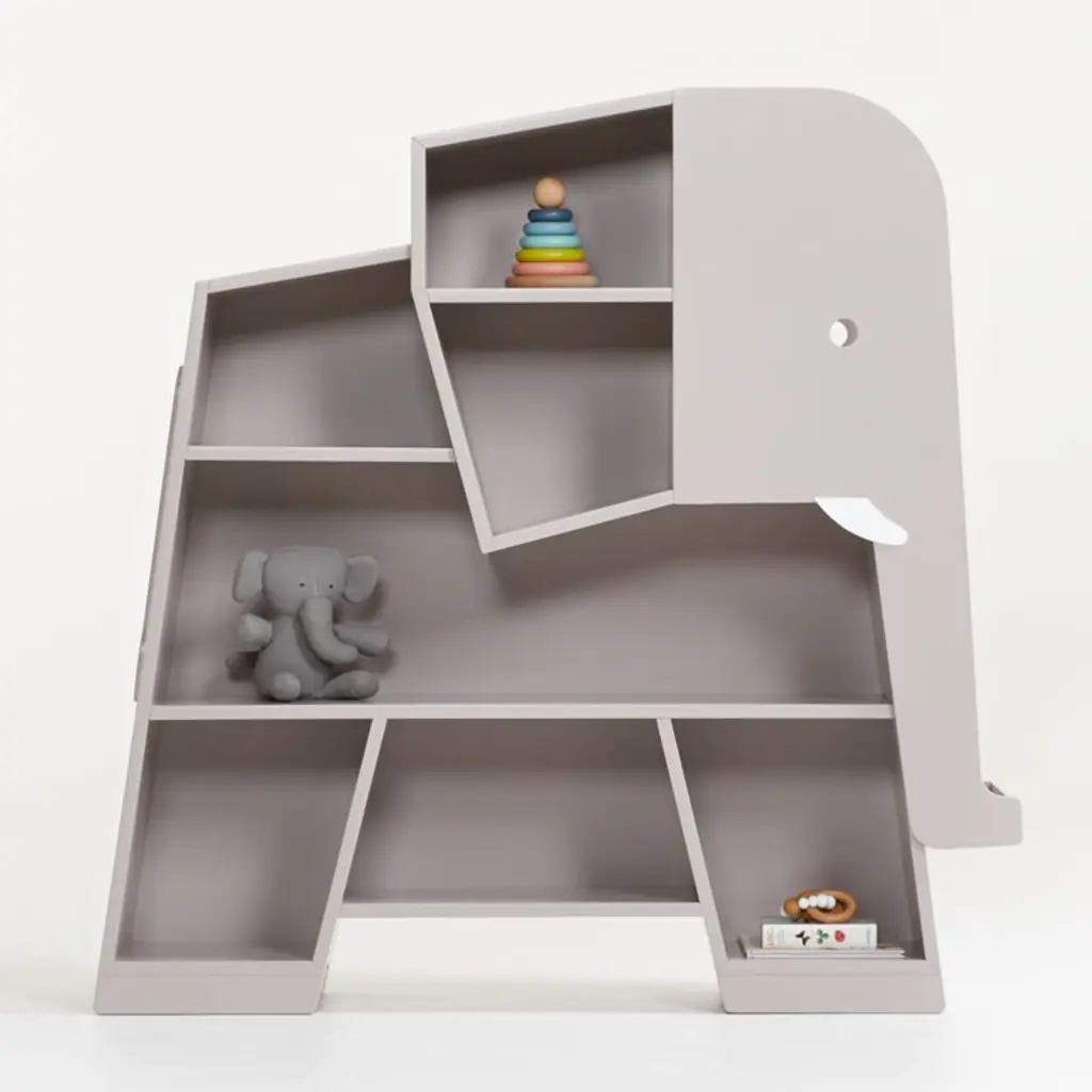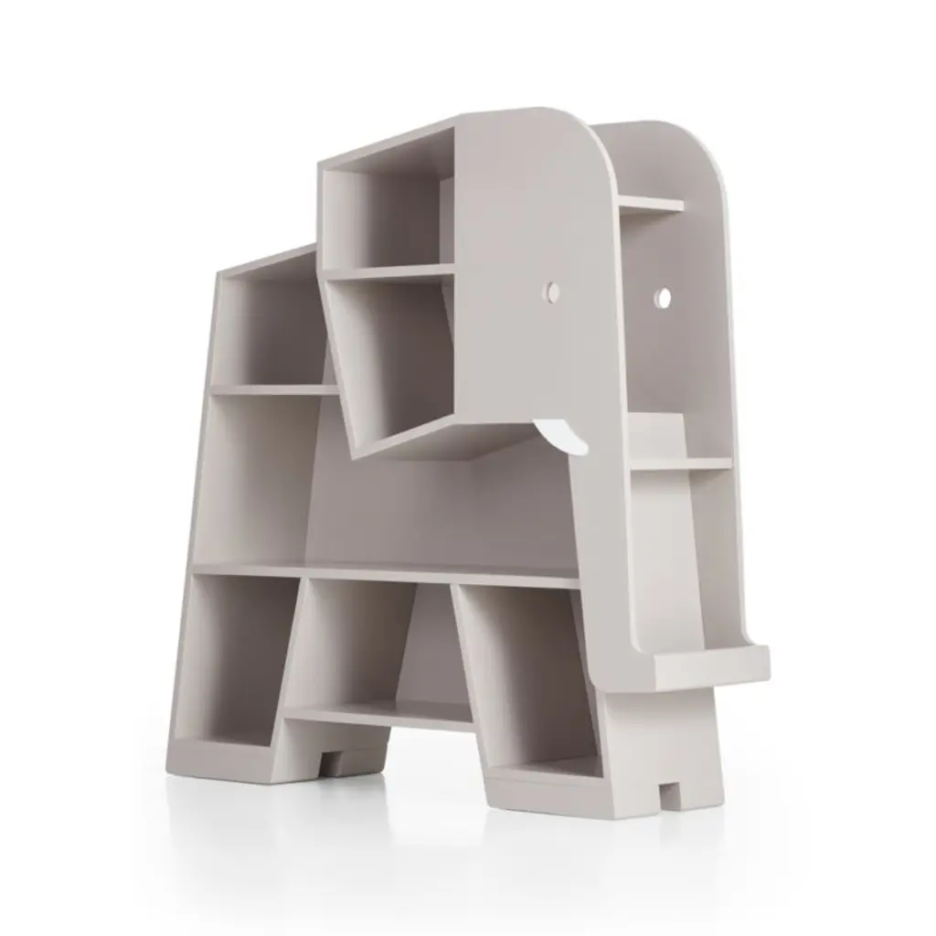 Our wildly stylish Elephant Bookcase is an unforgettable addition to any play space or kid's room. This oversized pal has a long trunk and decorative tusk, giving it an adventurous look that delights little ones. Plus, parents love the way our animal bookcase simplifies organization. With a variety of cubbie shapes and sizes, there's plenty of space to hold toys and display decor (including hidden storage space within the trunk). And the compartments at the bottom are easily accessible for small hands, so kids can help with cleanup time after those make-believe safaris.