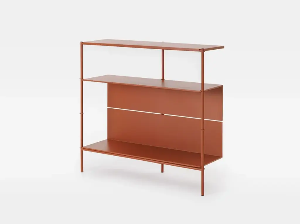 The Elle Consolle has a metal structure comprising three self-supporting vertical elements that can be put near each other. Thanks to the ‘L’ shaped metal shelves, this bookcase offers endless possibilities for customisation: the shelves can be arranged in a regular manner or rotated ‘upside down’ to create double-height spaces, thus adapting to different needs. Available in different colours, from monochrome to customised combinations, Elle Consolle easily adapts to any furnishing style. Being transversal is the distinguishing feature of this project, which perfectly fits into the philosophy of Mara products catalogue, designed to offer versatile solutions for multiple uses.