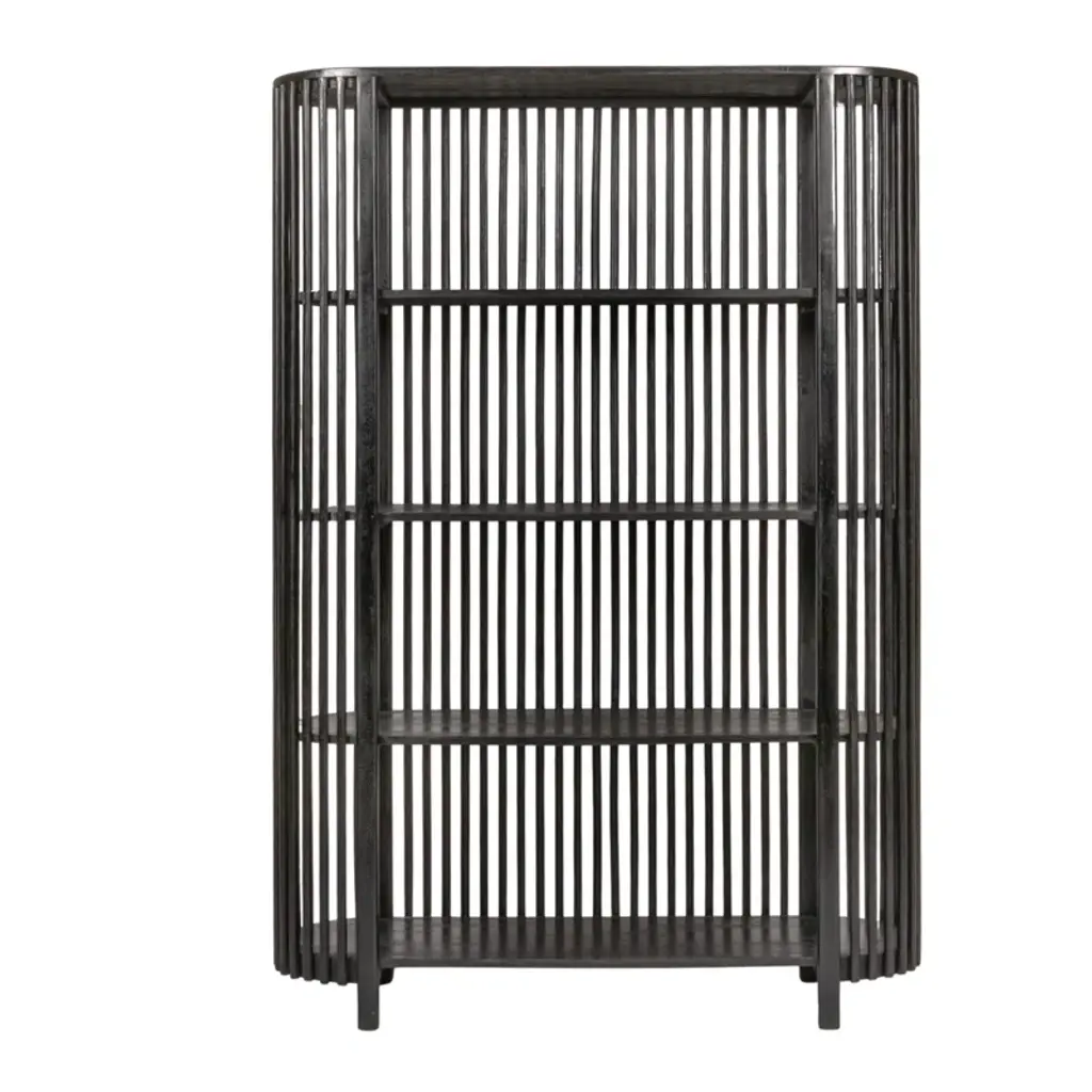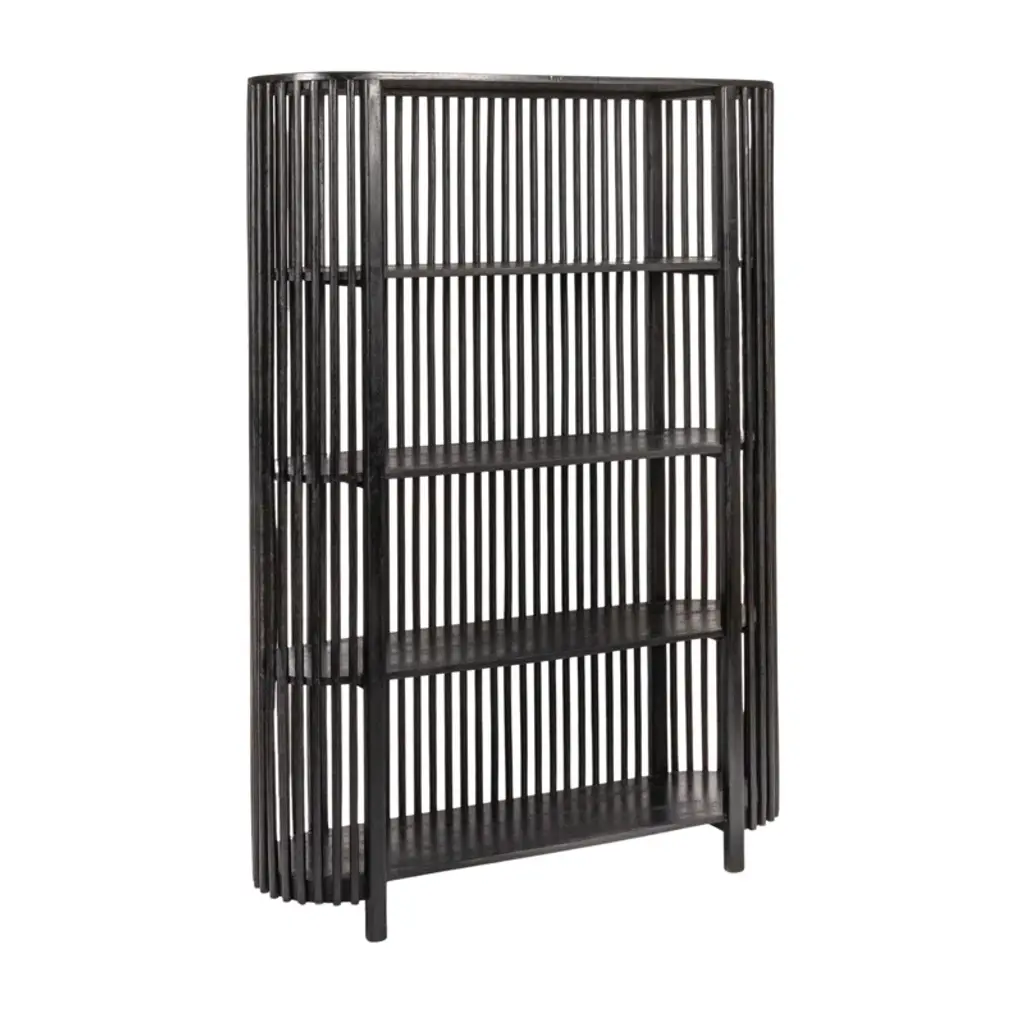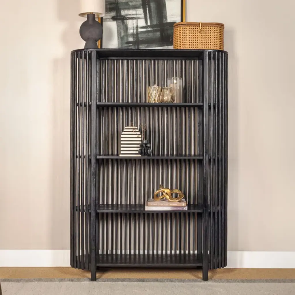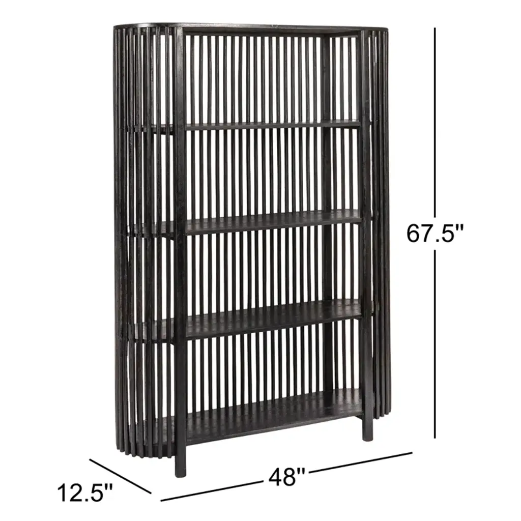 This rustic bookcase showcases a slatted design that offers a charming spot for your favorite reads and home decor. Made from solid mango wood, it features four spacious shelves that provide ample room for showcasing your book collection and decorative accents. The vertical orientation and warm wood finish make this piece an eye-catching addition to any room. With a 55 lb. shelf weight capacity, you can confidently display your cherished items on this freestanding bookcase.