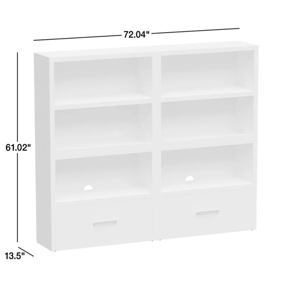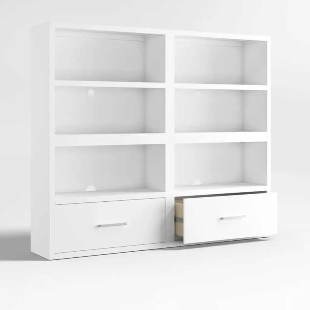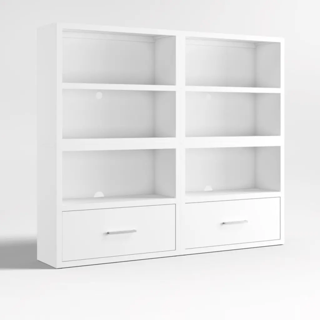 Ever Simple Set Of 2 Modular White Wood Kids Open Bookcases With Drawers